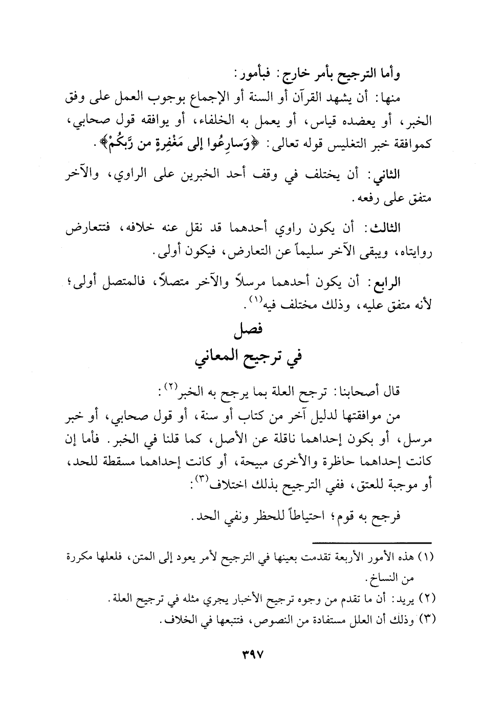 1 هذه الأمور الأربعة تقدمت بعينها في الترجيح لأمر يعود إلى المتن، فلعلها مكررة من النساخ.