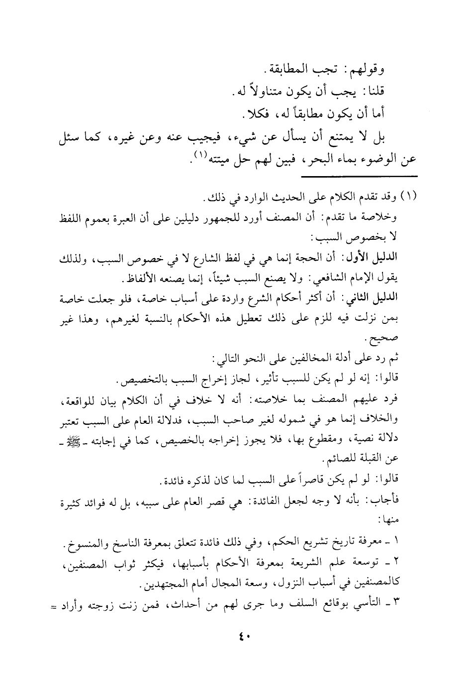 فأجاب: بأنه لا وجه لجعل الفائدة: هي قصر العام على سببه، بل له فوائد كثيرة منها: