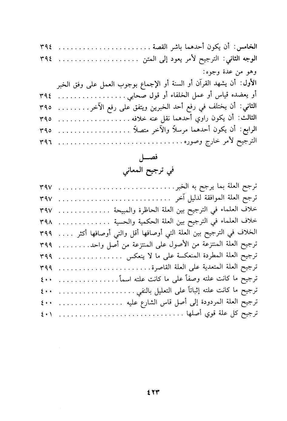 ترجح العلة المطردة المنعكسة على ما لا ينعكس 399