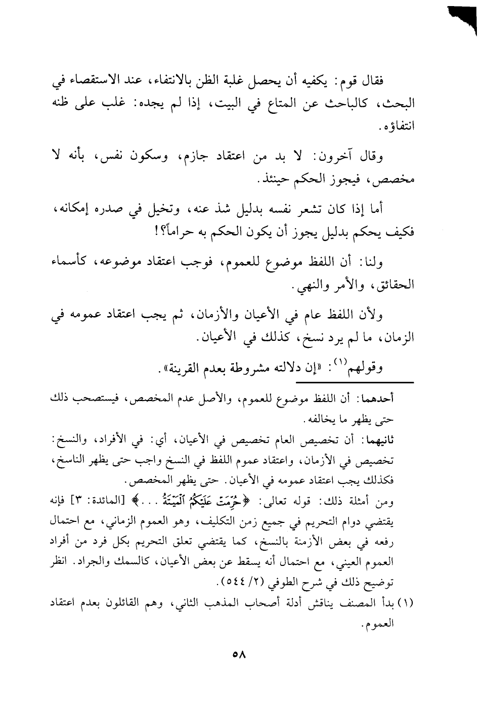 1 بدأ المصنف يناقش أدلة أصحاب المذهب الثاني، وهم القائلون بعدم اعتقاد العموم.