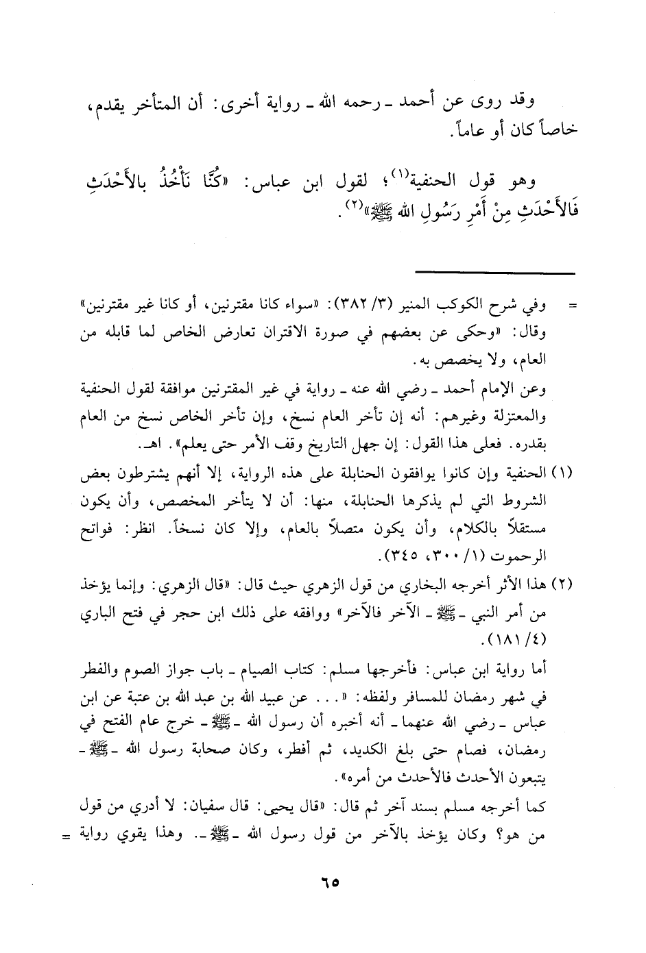 2 هذا الأثر أخرجه البخاري من قول الزهري حيث قال: "قال الزهري: وإنما يؤخذ من أمر النبي -صَلّى الله عَلَيْهِ وَسَلّم- الآخر فالآخر" ووافقه على ذلك ابن حجر في فتح الباري "4/ 181".