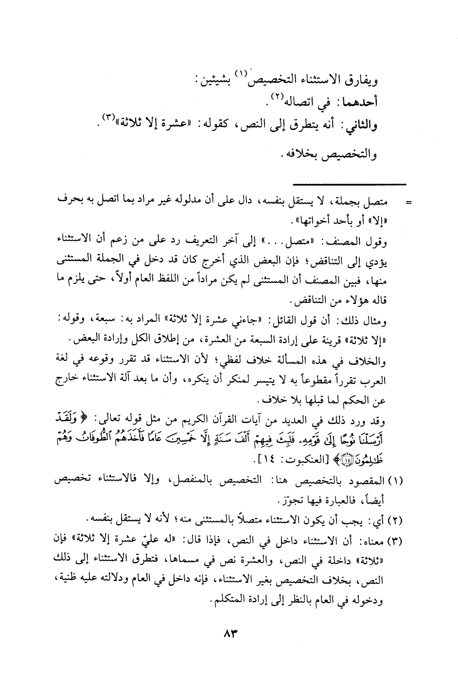 1 المقصود بالتخصيص هنا: التخصيص بالمنفصل، وإلا فالاستثناء تخصيص أيضًا، فالعبارة فيها تجوز.