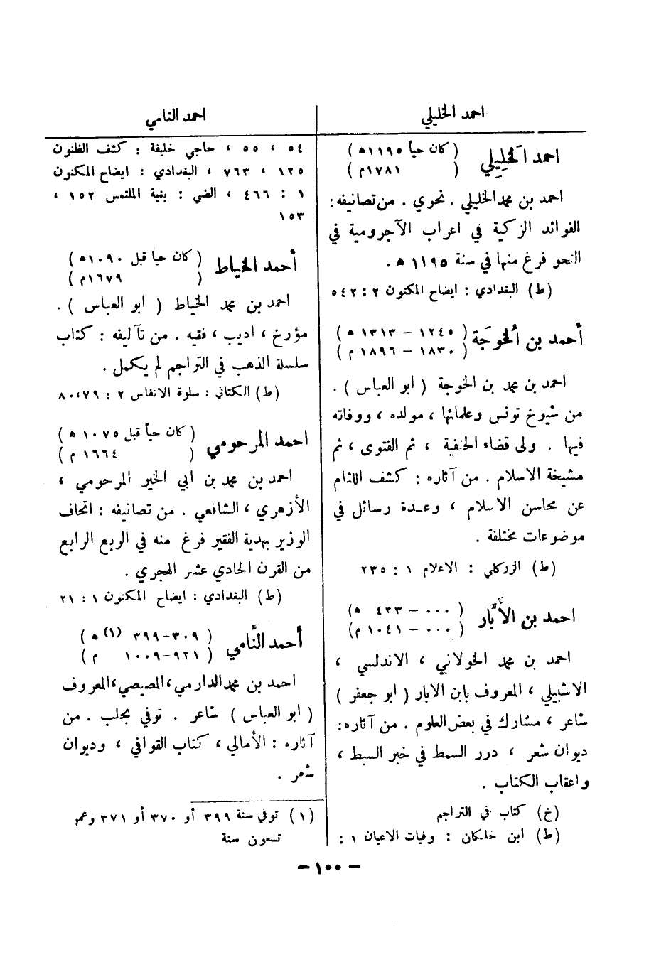 (ط) البغدادي: ايضاح المكنون 2: 542 أحمد بن الخوجة (1245 - 1313 هـ) (1830 - 1896 م) احمد بن محمد بن الخوجة (أبو العباس) .