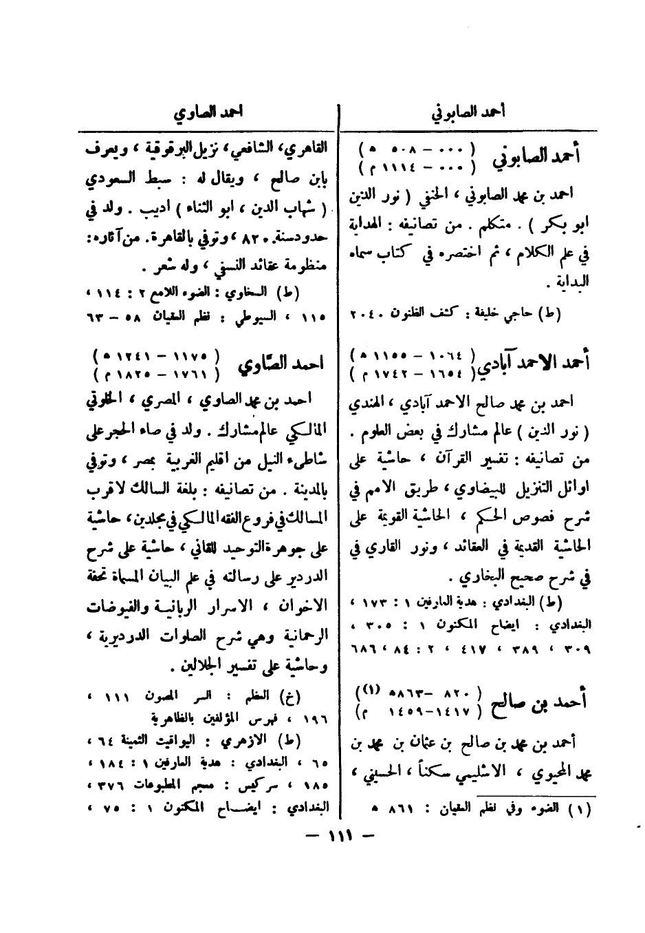 (ط) السخاوي: الضوء اللامع 2: 114، 115، السيوطي: نظم السقيان 58 - 63 احمد الصاوي (1175 - 1241 هـ) (1761 - 1825 م) احمد بن محمد الصاوي، المصري، الخلوتي المالكي عالم مشارك.