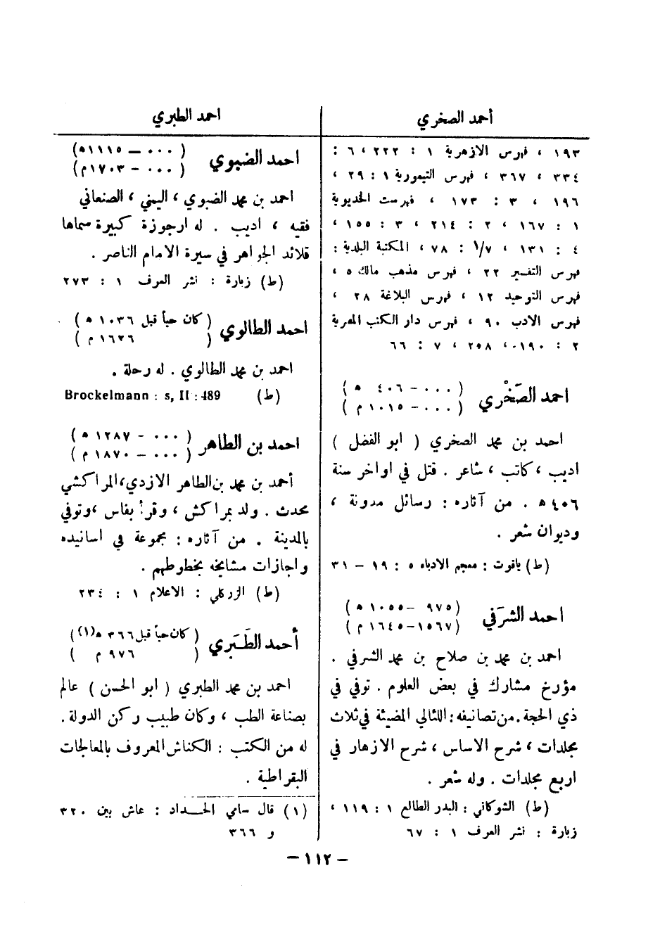 (ط) زبارة: نشر العرف 1: 273 احمد الطالوي (كان حيا قبل 1036 هـ) (1626 م) احمد بن محمد الطالوي.