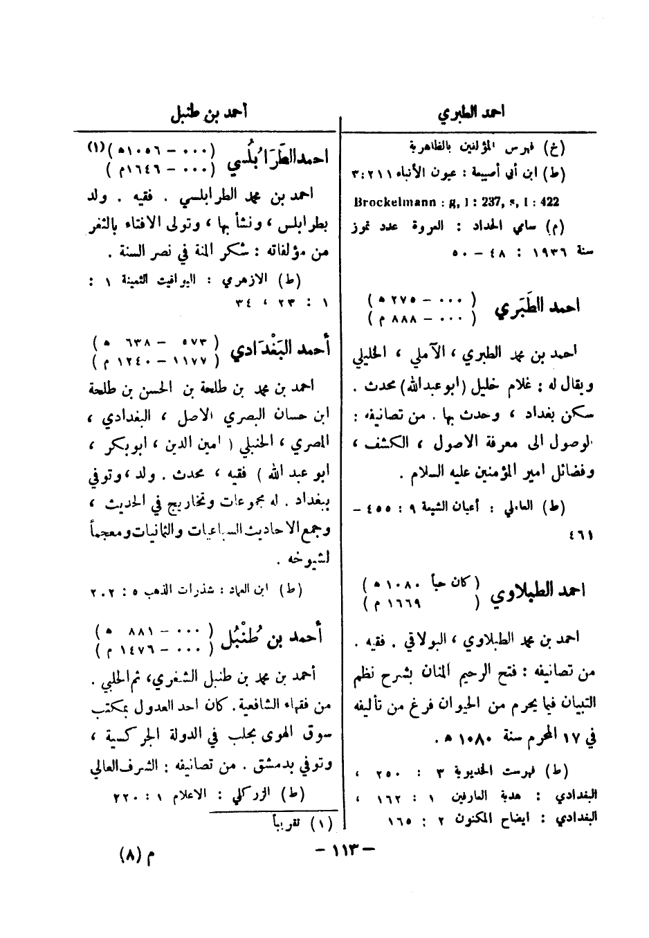 (ط) ابن العماد: شذرات الذهب 5: 202 أحمد بن طنبل (000 - 881 هـ) (000 - 1476 م) أحمد بن محمد بن طنبل الشغري، ثم الحلبي.