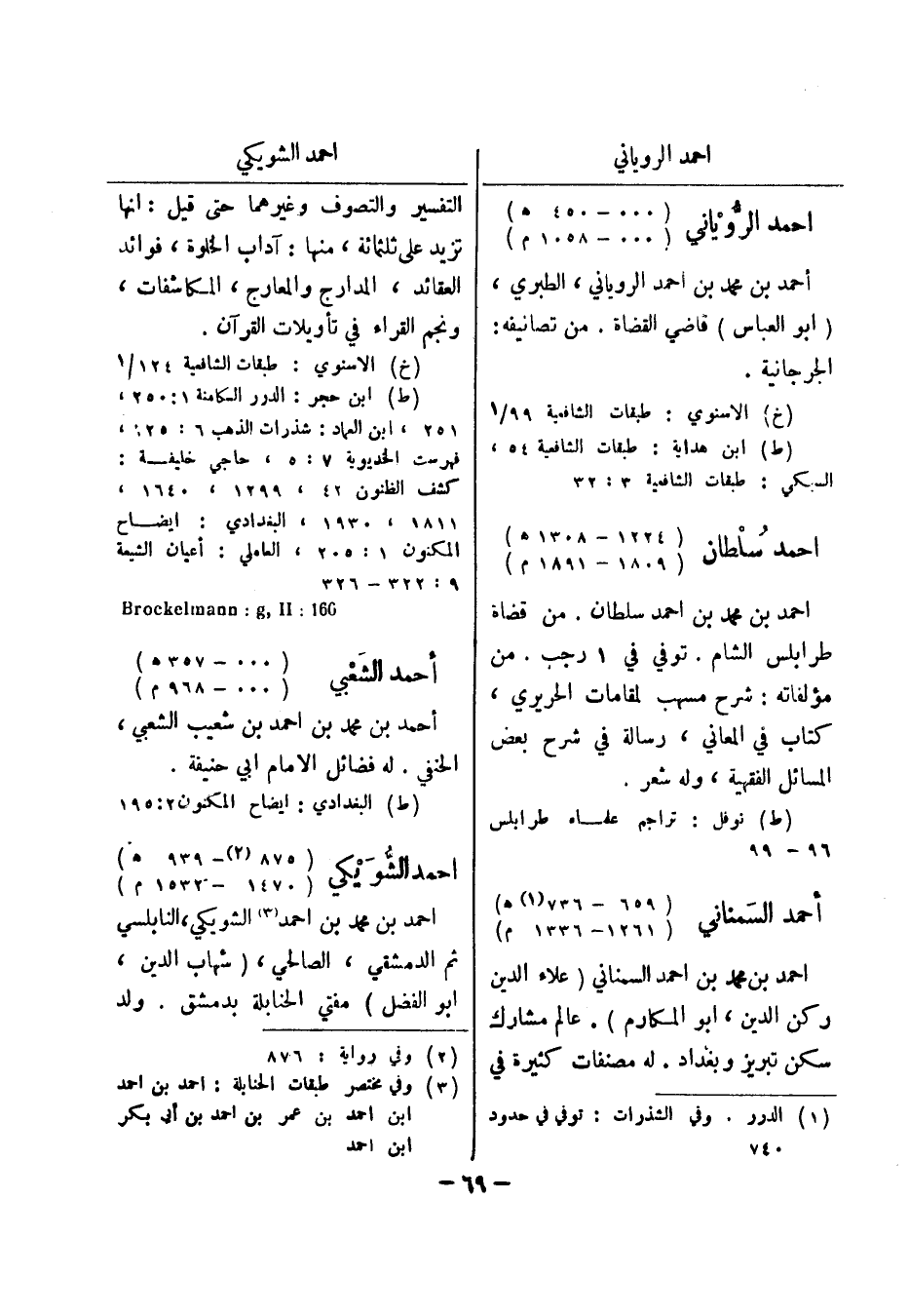 (خ) الاسنوي: طبقات الشافعية 99 / 1 (ط) ابن هداية: طبقات الشافعية 54، السبكي: طبقات الشافعية 3: 32 احمد سلطان (1224 - 1308 هـ) (1809 - 1891 م) احمد بن محمد بن احمد سلطان.