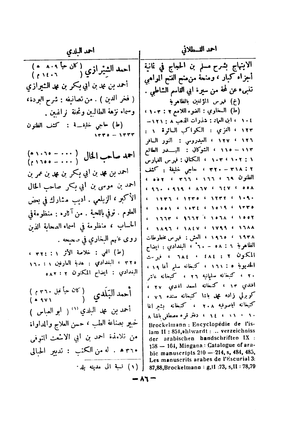 ... : lam II: 458 , ahlwardt - 851 - 461 , Mingana: Brockelmann: Encyclopedie de l ' is: der arabischen handschriften IX Les verzeichniss , 485 , 484 , bic manuscripts 012 - 412 , s - 73 , s , II: 87 , manuscrits arabes de l 97 ' Escurial 3: 78 , 88 , Brockelmann: g , II: Catalogue of ara احمد الشيرازي (كان حيا 809 هـ) (1406 م) أحمد بن محمد بن ابي بكر بن محمد الشيرازي (فخر الدين) .