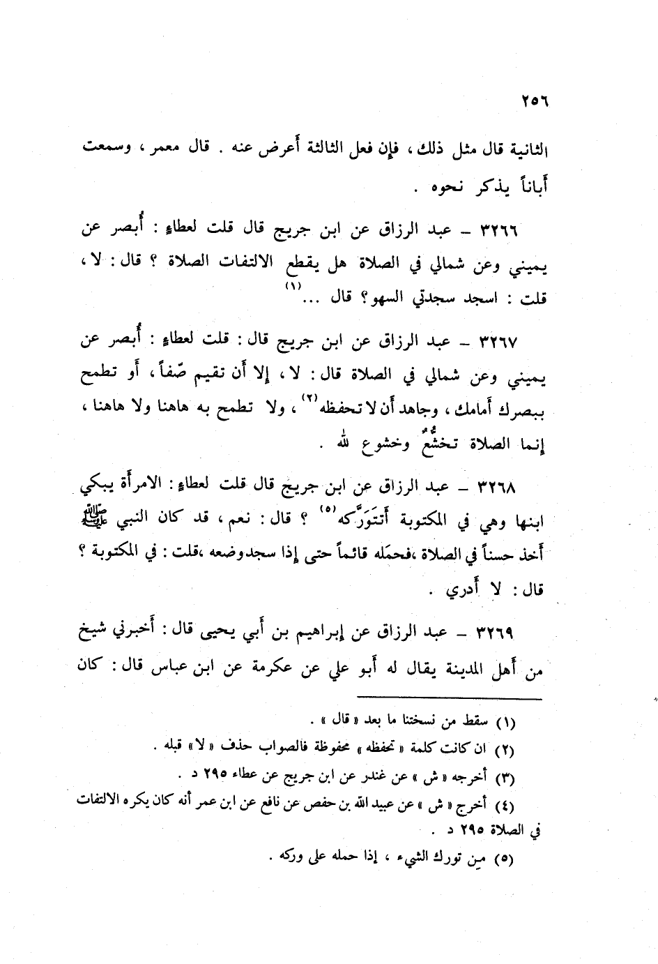 ٣٢٦٧ - عَنِ ابْنِ جُرَيْجٍ قَالَ: قُلْتُ لِعَطَاءٍ: أُبْصِرُ عَنْ يَمِينِي وَعَنْ شِمَالِي فِي الصَّلَاةِ؟ قَالَ: «لَا، إِلَّا أَنْ تُقِيمَ صَفًّا، أَوْ تَطْمَحَ بِبَصَرِكَ أَمَامَكَ، وَجَاهِدْ أَنْ لَا تَحْفَظَهُ، وَلَا تَطْمَحْ بِهِ هَاهُنَا وَلَا هَاهُنَا، إِنَّمَا الصَّلَاةُ تَخَشُّعٌ وَخُشُوعٌ لِلَّهِ»