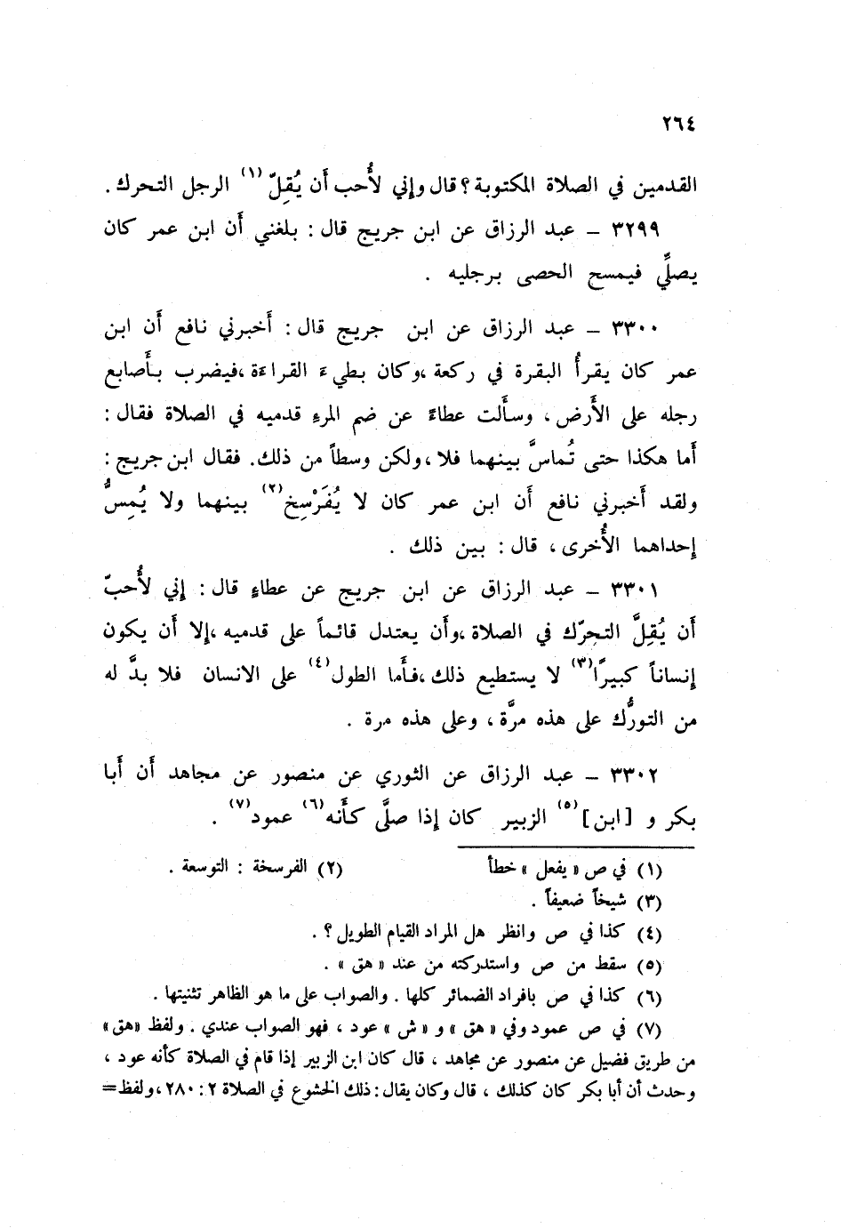 ٣٣٠٠ - عَنِ ابْنِ جُرَيْجٍ قَالَ: أَخْبَرَنِي نَافِعٌ، «أَنَّ ابْنَ عُمَرَ كَانَ يَقْرَأُ الْبَقَرَةَ فِي رَكْعَةٍ، وَكَانَ بَطِيءُ الْقِرَاءَةِ، فَيَضْرِبُ بِأَصَابِعِ رِجْلِهِ عَلَى الْأَرْضِ»