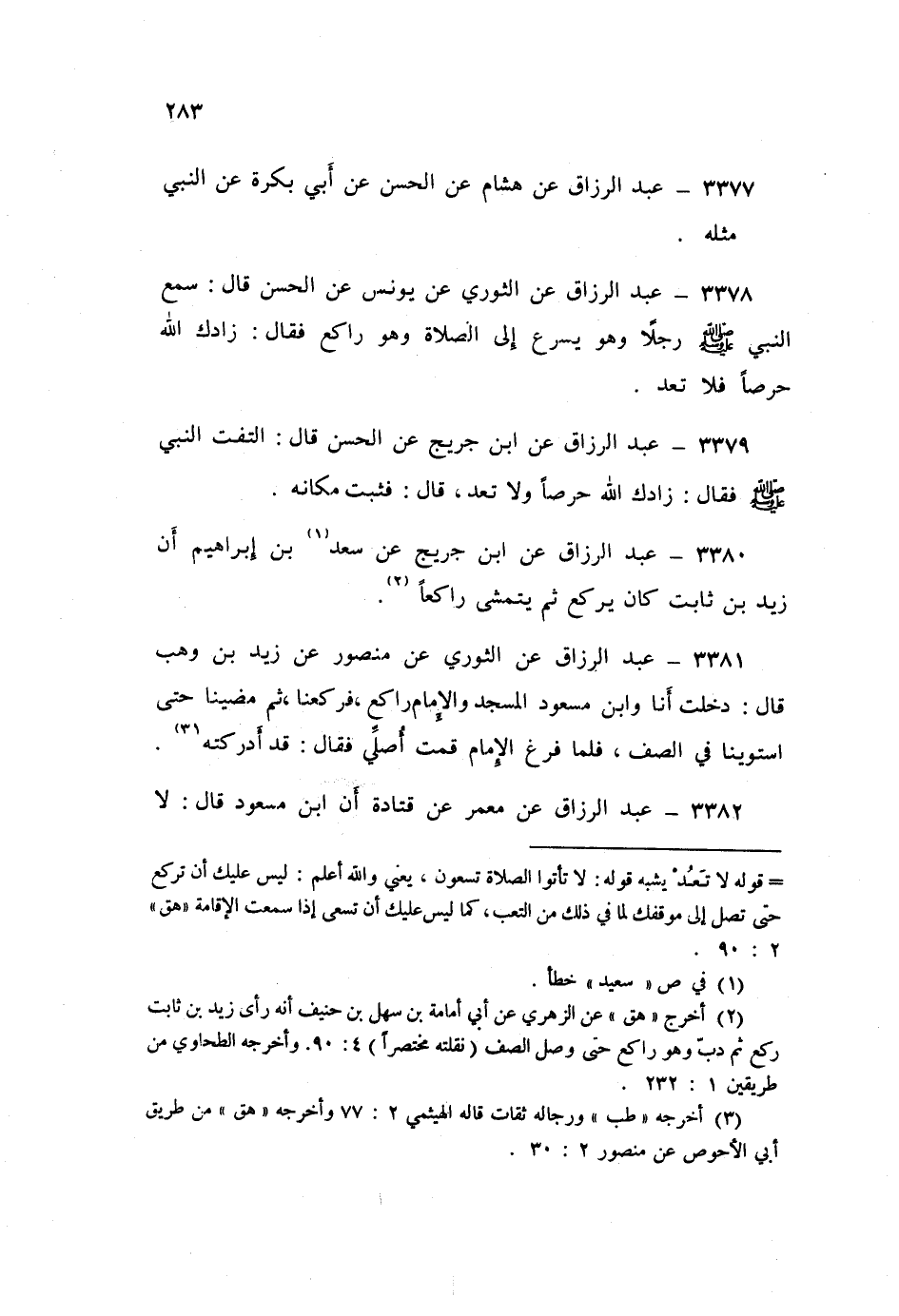 ٣٣٧٨ - عَنِ الثَّوْرِيِّ، عَنْ يُونُسَ، عَنِ الْحَسَنِ قَالَ: سَمِعَ النَّبِيُّ صَلَّى اللهُ عَلَيْهِ وَسَلَّمَ رَجُلًا وَهُوَ يُسْرِعُ إِلَى الصَّلَاةِ وَهُوَ رَاكِعٌ فَقَالَ: «زَادَكَ اللَّهُ حِرْصًا فَلَا تَعُدْ»