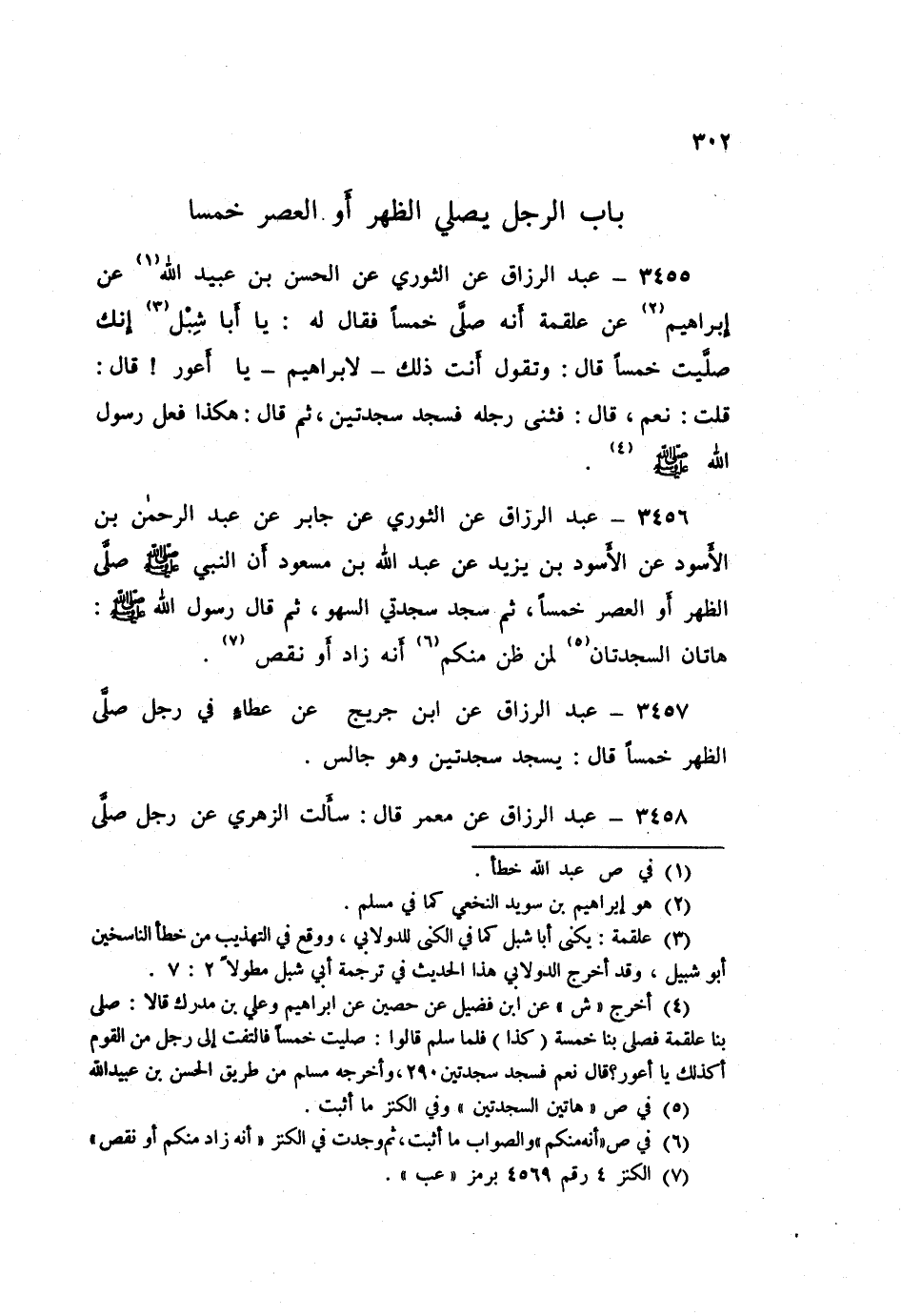 ٣٤٥٨ - عَنْ مَعْمَرٍ قَالَ: سَأَلْتُ الزُّهْرِيَّ، عَنْ رَجُلٍ صَلَّى الظُّهْرَ خَمْسًا «هُوَ يَسْجُدُ سَجْدَتَيْنِ» عَبْدُ الرَّزَّاقِ،