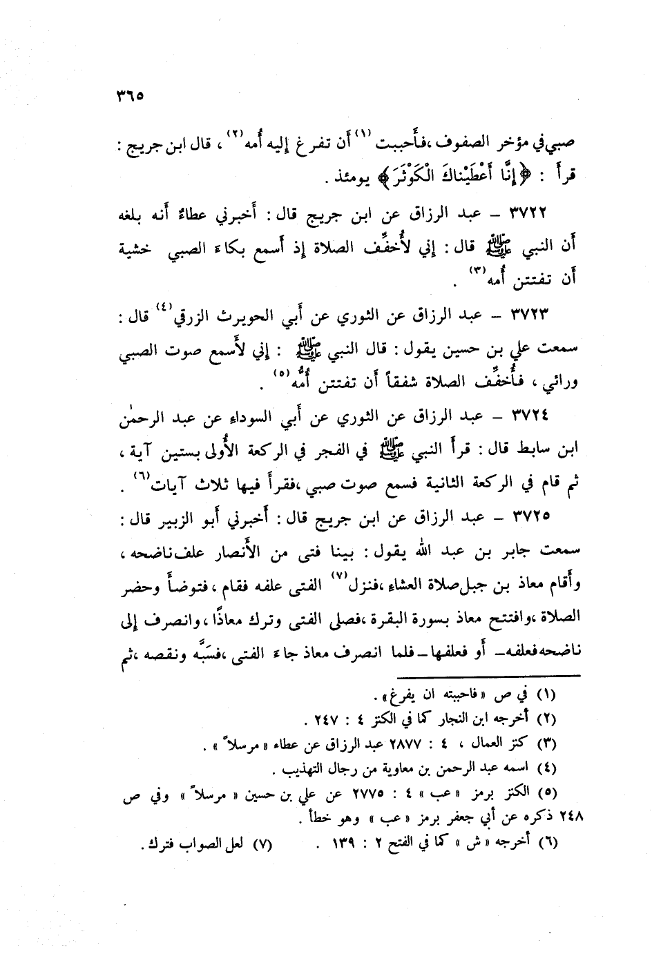 ٣٧٢٤ - عَنِ الثَّوْرِيِّ، عَنْ أَبِي السَّوْدَاءِ، عَنْ عَبْدِ الرَّحْمَنِ بْنِ سَابِطٍ قَالَ: «قَرَأَ النَّبِيُّ صَلَّى اللهُ عَلَيْهِ وَسَلَّمَ فِي الْفَجْرِ فِي الرَّكْعَةِ الْأُولَى بِسِتِّينَ آيَةً، ثُمَّ قَامَ فِي الرَّكْعَةِ الثَّانِيَةِ، فَسَمِعَ صَوْتَ صَبِيٍّ، فَقَرَأَ فِيهَا ثَلَاثَ آيَاتٍ»