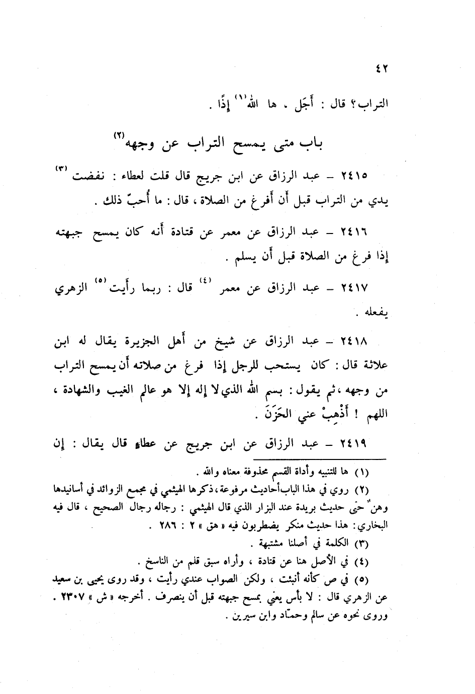 ٢٤١٧ - عَنْ مَعْمَرٍ قَالَ: رُبَّمَا رَأَيْتُ الزُّهْرِيَّ يَفْعَلُهُ