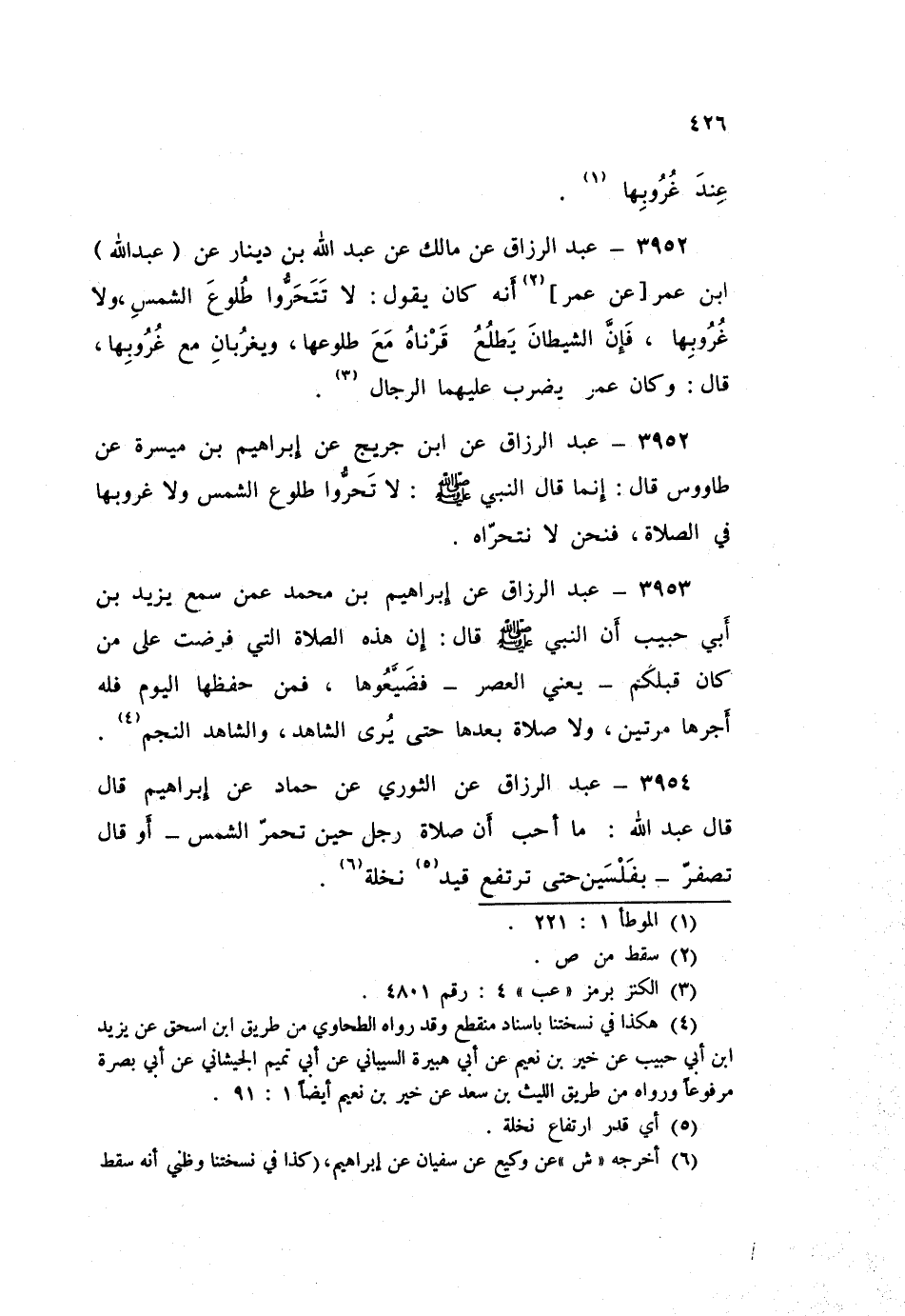 ٣٩٥٤ - عَنِ الثَّوْرِيِّ، عَنْ حَمَّادٍ، عَنْ إِبْرَاهِيمَ قَالَ: قَالَ عَبْدُ اللَّهِ: " مَا أَحَبُّ أَنَّ صَلَاةَ رَجُلٍ حِينَ تَحْمَرُّ الشَّمْسُ - أَوْ قَالَ: تَصْفَرُّ - بِفَلْسَيْنِ حَتَّى تَرْتَفِعَ قِيدَ نَخْلَةٍ "