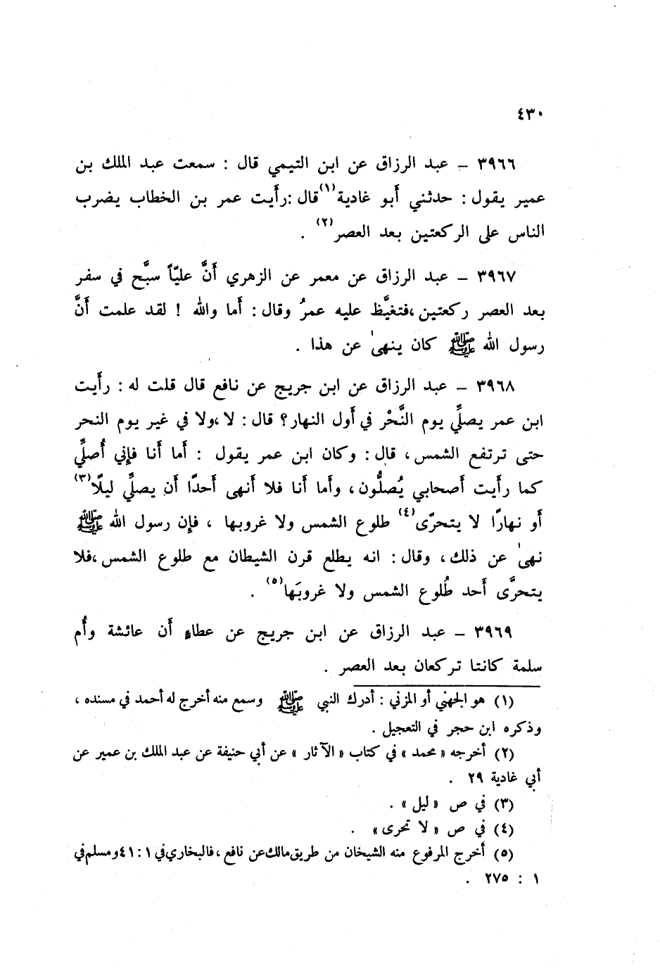 ٣٩٦٩ - عَنِ ابْنِ جُرَيْجٍ، عَنْ عَطَاءٍ: «أَنَّ عَائِشَةَ، وَأُمَّ سَلَمَةَ كَانَتَا تَرْكَعَانِ بَعْدَ الْعَصْرِ»