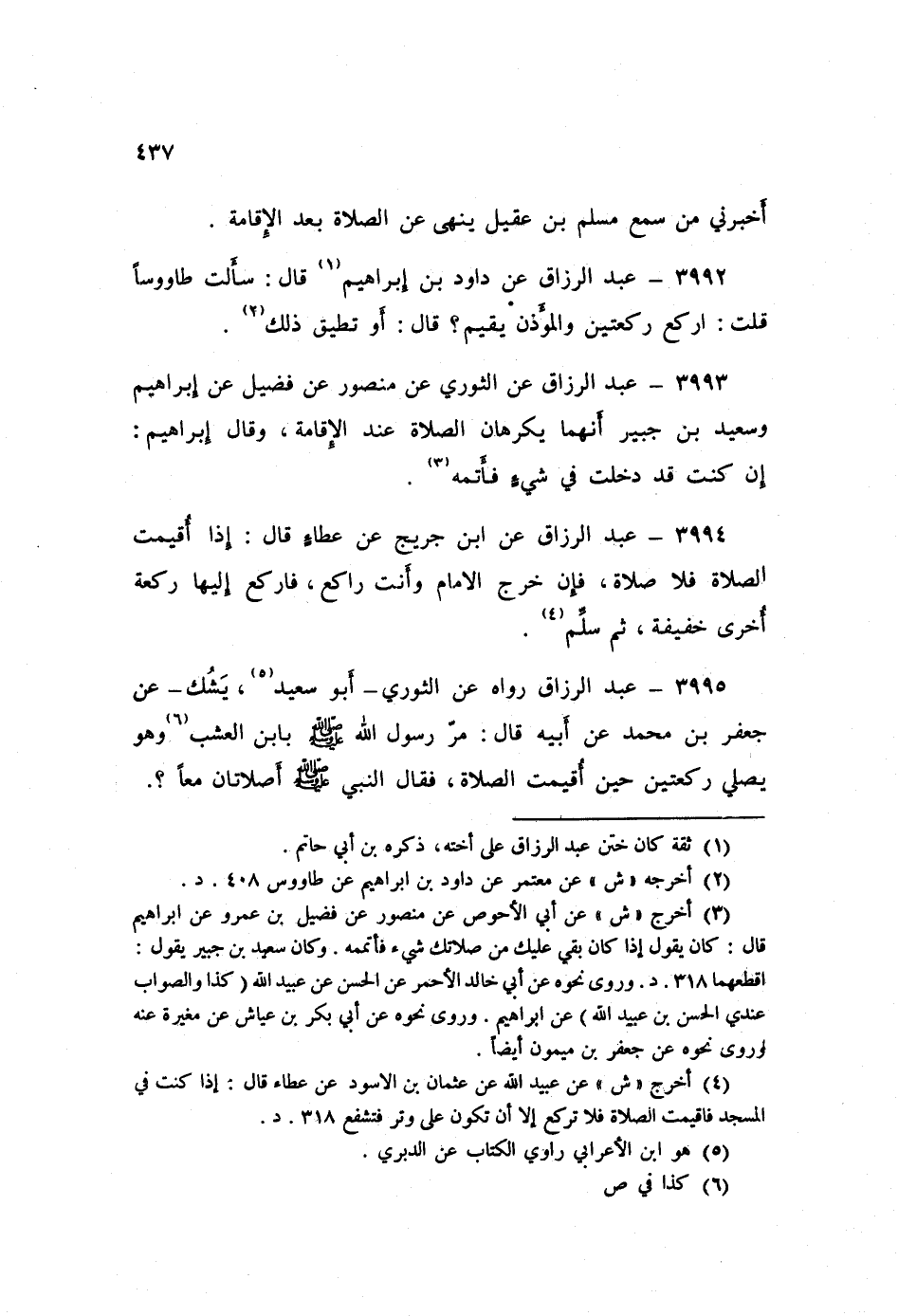 ٣٩٩٣ - عَنِ الثَّوْرِيِّ، عَنْ مَنْصُورٍ، عَنْ فُضَيْلٍ، عَنْ إِبْرَاهِيمَ، وَسَعِيدِ بْنِ جُبَيْرٍ: «أَنَّهُمَا يَكْرَهَانِ الصَّلَاةَ عِنْدَ الْإِقَامَةِ»، وَقَالَ إِبْرَاهِيمُ: «إِنْ كُنْتَ قَدْ دَخَلْتَ فِي شَيْءٍ فَأَتِمَّهُ»