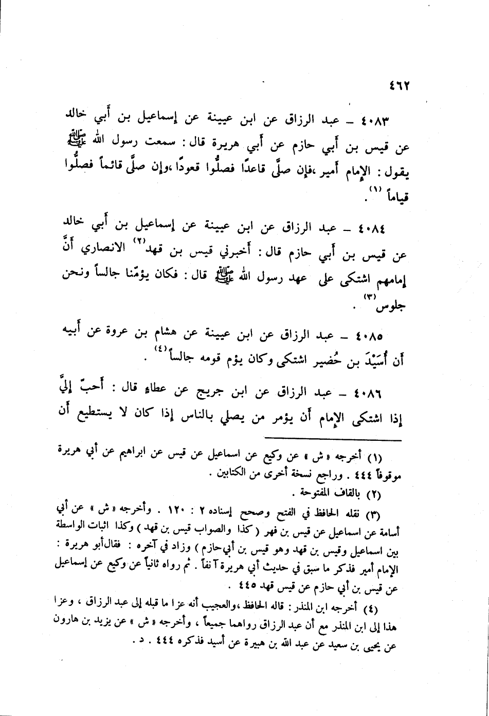 ٤٠٨٤ - عَنِ ابْنِ عُيَيْنَةَ، عَنْ إِسْمَاعِيلَ بْنِ أَبِي خَالِدٍ، عَنْ قَيْسِ بْنِ أَبِي حَازِمٍ قَالَ: أَخْبَرَنِي قَيْسُ بْنُ قَهْدٍ الْأَنْصَارِيُّ، أَنَّ إِمَامَهُمُ اشْتَكَى عَلَى عَهْدِ رَسُولِ اللَّهِ صَلَّى اللهُ عَلَيْهِ وَسَلَّمَ قَالَ: «فَكَانَ يَؤُمُّنَا جَالِسًا وَنَحْنُ جُلُوسٌ»