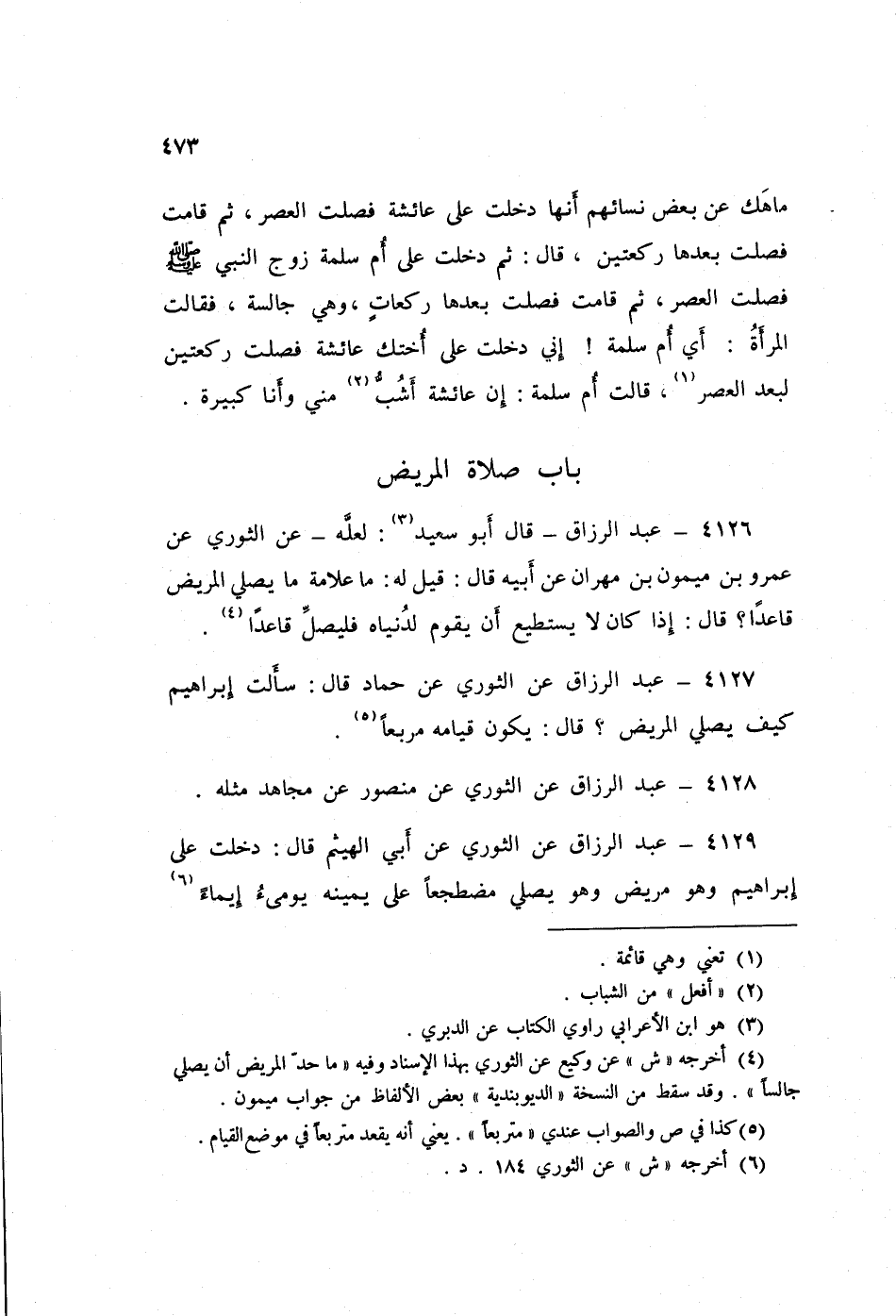 ٤١٢٧ - عَنِ الثَّوْرِيِّ، عَنْ حَمَّادٍ قَالَ: سَأَلْتُ إِبْرَاهِيمَ: كَيْفَ يُصَلِّي الْمَرِيضُ؟ قَالَ: «يَكُونُ قِيَامُهُ مُرَبِّعًا» عَبْدُ الرَّزَّاقِ،