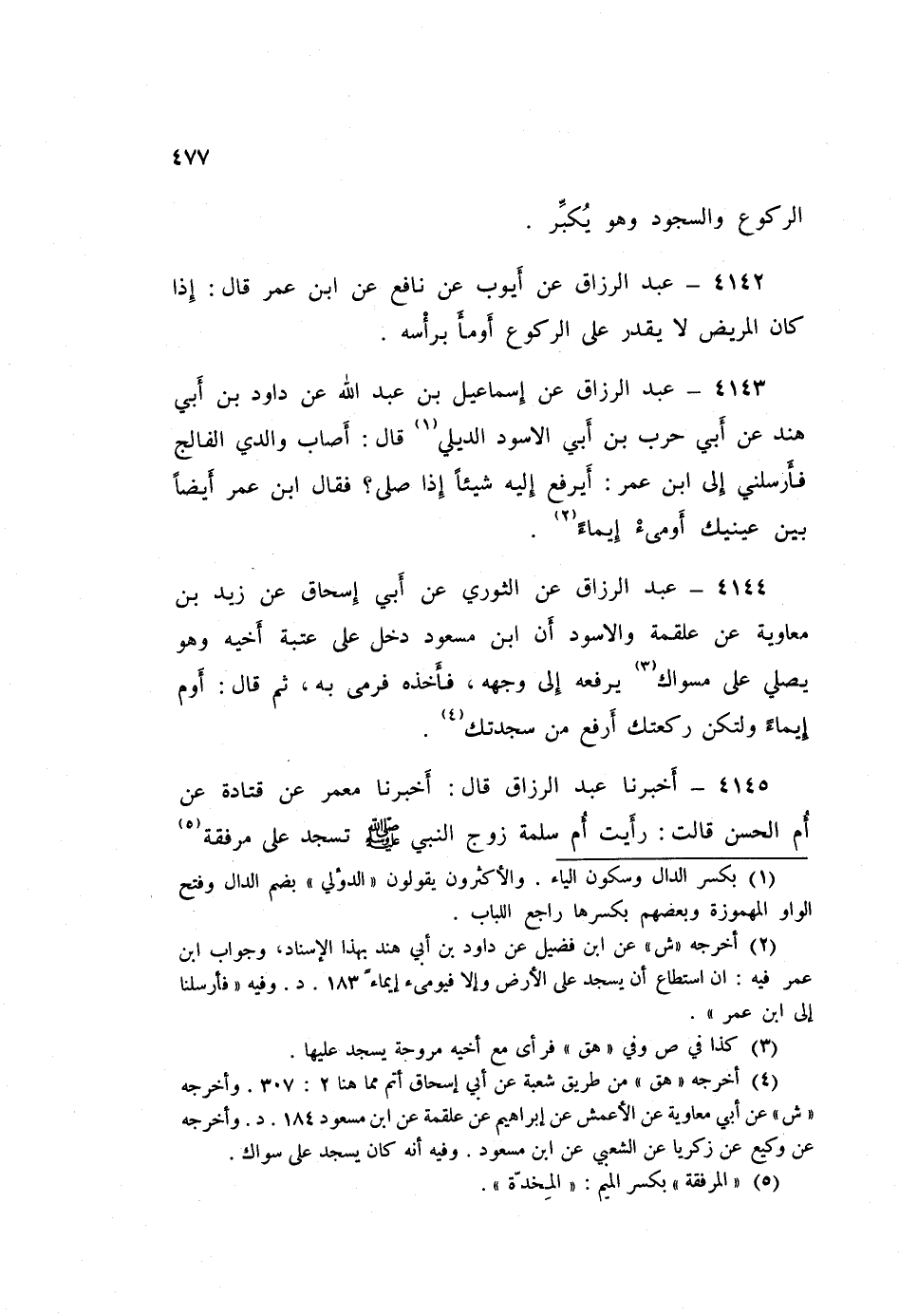 ٤١٤٥ - عَبْدُ الرَّزَّاقِ قَالَ: أَخْبَرَنَا مَعْمَرٌ، عَنْ قَتَادَةَ، عَنْ أُمِّ الْحَسَنِ قَالَتْ: «رَأَيْتُ أُمَّ سَلَمَةَ زَوْجَ النَّبِيِّ صَلَّى اللهُ عَلَيْهِ وَسَلَّمَ تَسْجُدُ عَلَى مِرْفَقَةٍ، وَهِيَ قَاعِدَةٌ»، أَعْنِي تُصَلِّي قَاعِدَةً