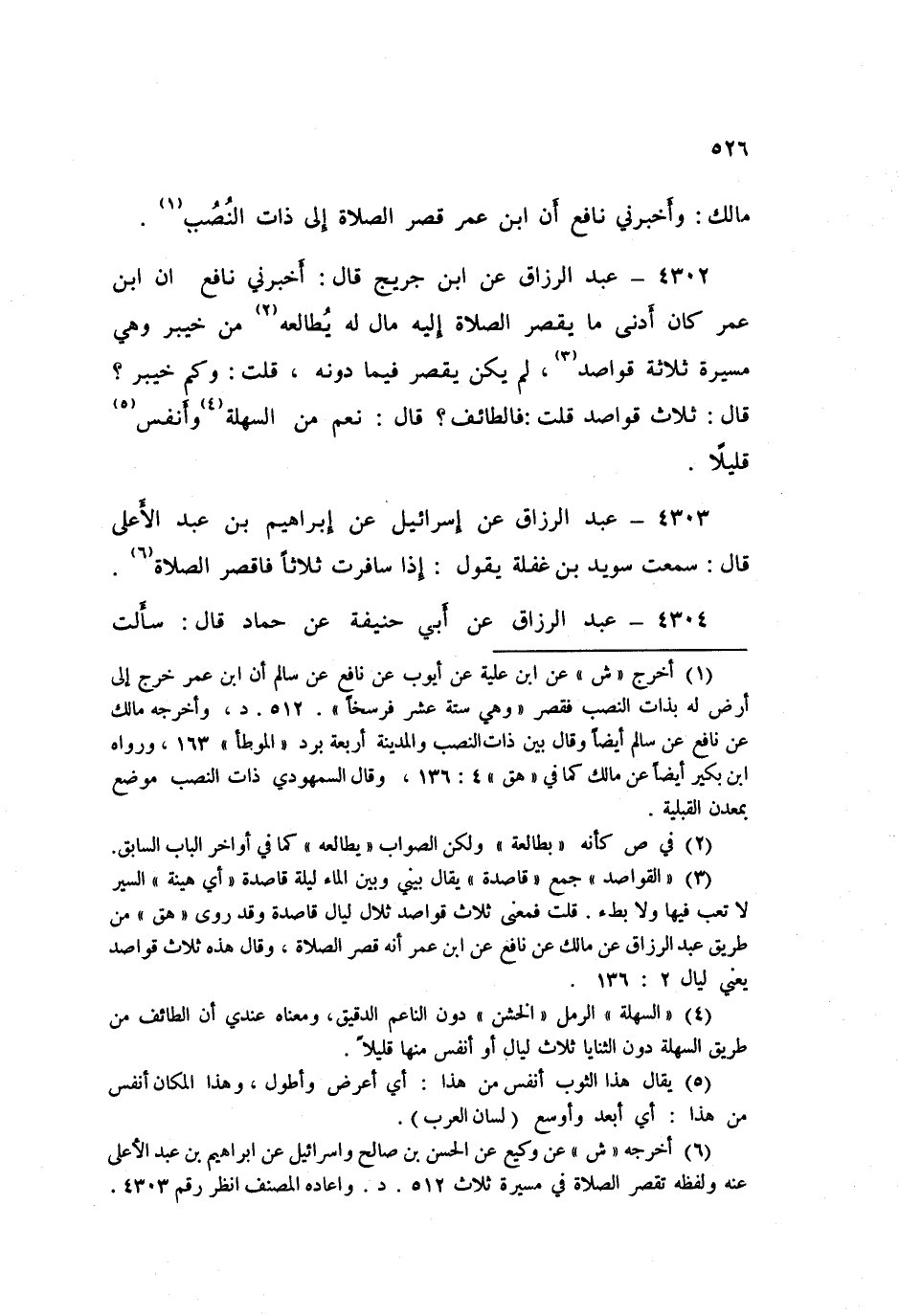 ٤٣٠٥ - عَنْ مَعْمَرٍ، عَنْ قَتَادَةَ، عَنِ الْحَسَنِ قَالَ: «إِذَا كَانَ السَّفَرُ مَسِيرَةَ لَيْلَتَيْنِ فَأَكْثَرَ فَاقْصُرِ الصَّلَاةَ»، «. وَبِهِ يَأْخُذُ قَتَادَةُ»
