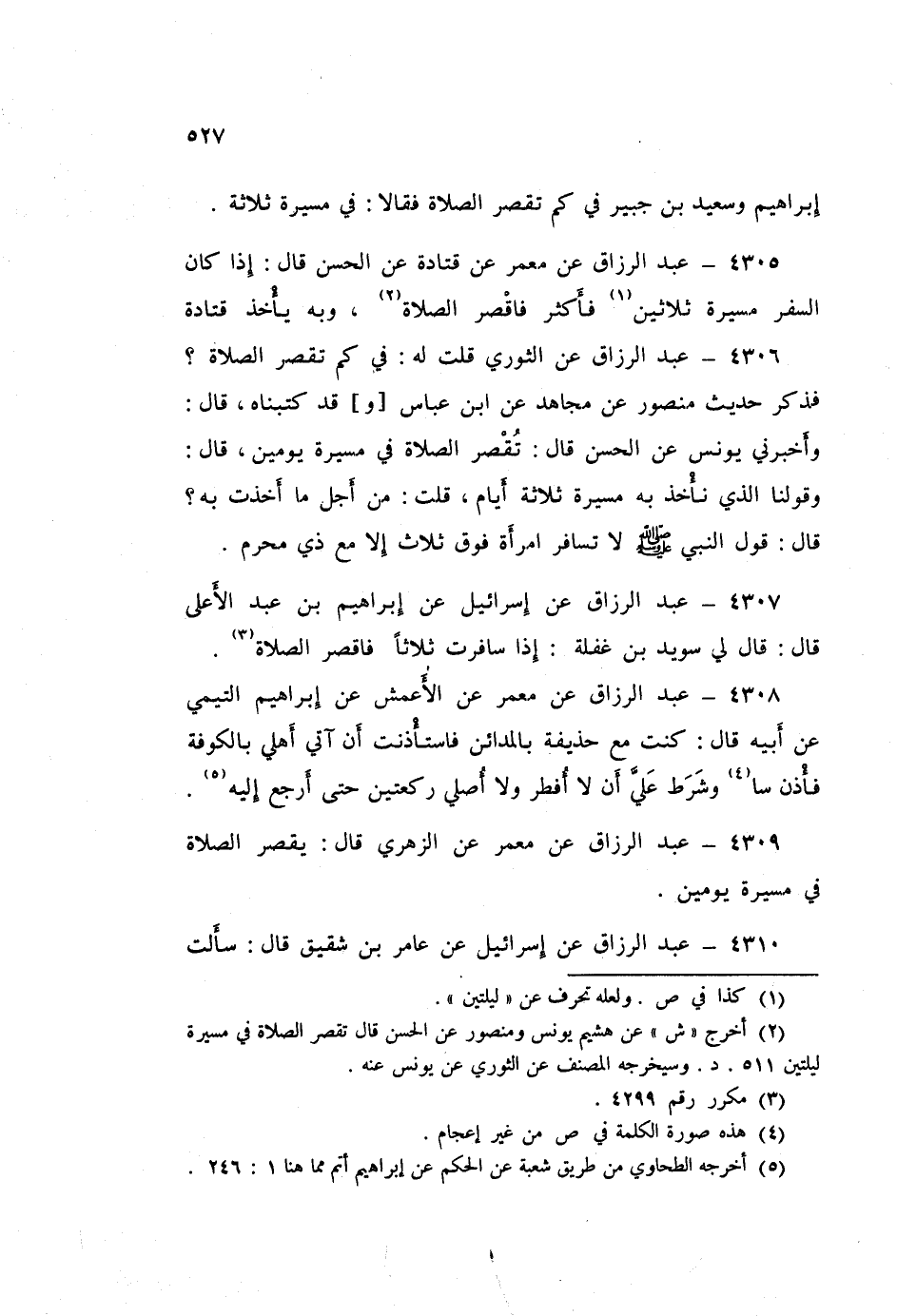 ٤٣٠٩ - عَنْ مَعْمَرٍ، عَنِ الزُّهْرِيِّ قَالَ: «يَقْصُرُ الصَّلَاةَ فِي مَسِيرَةِ يَوْمَيْنِ»