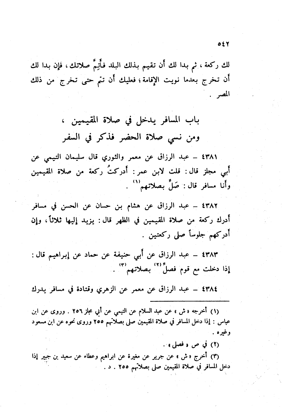 ٤٣٨٤ - عَنْ مَعْمَرٍ، عَنِ الزُّهْرِيِّ، وَقَتَادَةَ فِي مُسَافِرٍ يُدْرِكُ مِنْ صَلَاةِ الْمُقِيمِينَ رَكْعَةً، قَالَا: «يُصَلِّي بِصَلَاتِهِمْ، فَإِنْ أَدْرَكَهُمْ جُلُوسًا صَلَّى رَكْعَتَيْنِ»
