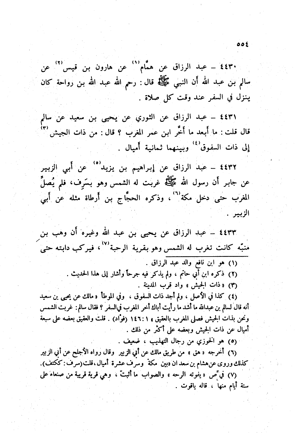 ٤٤٣٣ - عَنْ يَحْيَى بْنِ عَبْدِ اللَّهِ وَغَيْرِهِ، أَنَّ وَهْبَ بْنَ مُنَبِّهٍ كَانَتْ تَغْرُبُ لَهُ الشَّمْسُ وَهُوَ بِقَرْيَةِ الرَّحَبَةِ، فَيَرْكَبُ دَابَّتَهُ حَتَّى يَأْتِيَ مَنْزِلَهُ بِصَنْعَاءَ