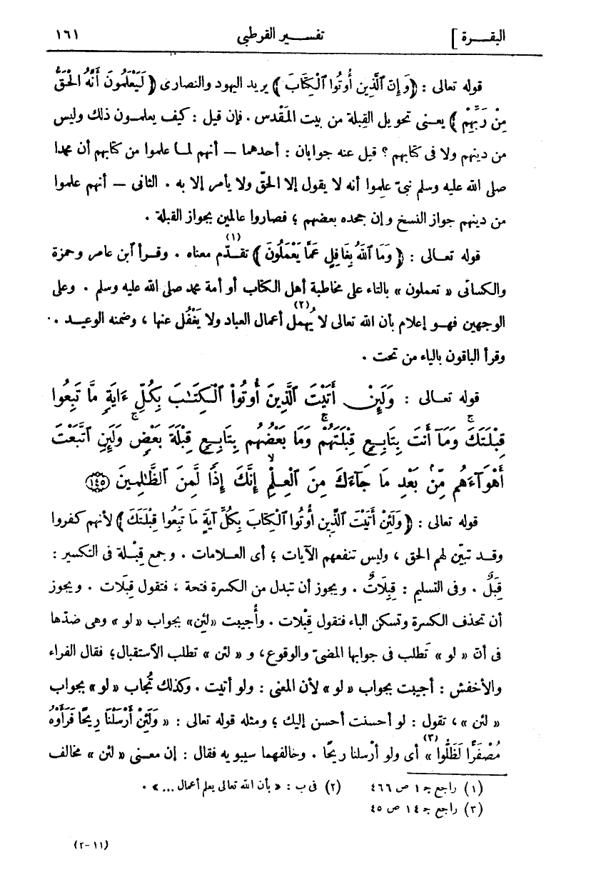 [سورة البقرة (٢): آية ١٤٥]