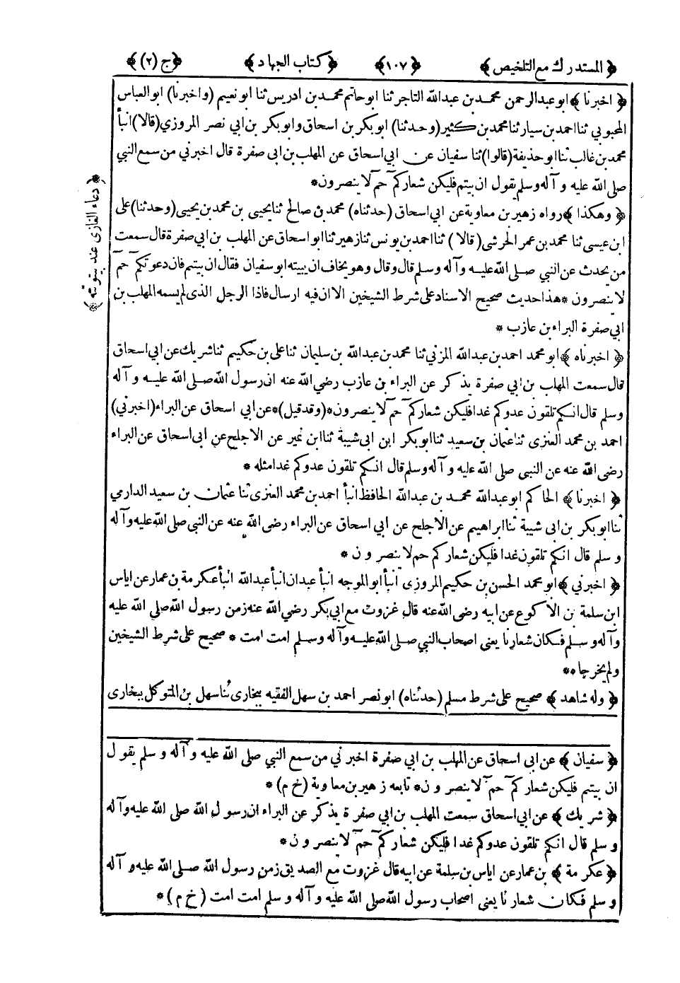 هَذَا حَدِيثٌ صَحِيحُ الإِسْنَادِ عَلَى شَرْطِ الشَّيْخَيْنِ إِلاَّ أَنَّ فِيهِ إِرْسَالاً ، فَإِذَا الرَّجُلُ الَّذِي لَمْ يُسَمِّهِ الْمُهَلَّبُ بْنُ أَبِي صُفْرَةَ الْبَرَاءُ بْنُ عَازِبٍ.