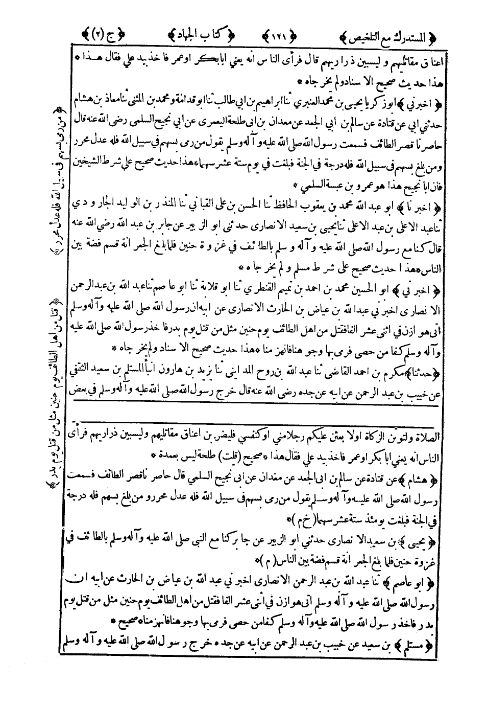2561- أَخْبَرَنَا أَبُو عَبْدِ اللهِ مُحَمَّدُ بْنُ يَعْقُوبَ الْحَافِظُ ، حَدَّثَنَا الْحَسَنُ بْنُ عَلِيٍّ الْقَبَّانِيُّ ، حَدَّثَنَا الْمُنْذِرُ بْنُ الْوَلِيدِ الْجَارُودِيُّ ، حَدَّثَنَا عَبْدُ الأَعْلَى بْنُ عَبْدِ الأَعْلَى ، حَدَّثَنَا يَحْيَى بْنُ سَعِيدٍ الأَنْصَارِيُّ ، حَدَّثَنِي أَبُو الزُّبَيْرِ ، عَنْ جَابِرِ بْنِ عَبْدِ اللهِ رَضِيَ اللَّهُ عَنْهُ ، قَالَ : كُنَّا مَعَ رَسُولِ اللهِ صَلَّى اللَّهُ عَلَيْهِ وَسَلَّمَ بِالطَّائِفِ فِي غَزْوَةِ حُنَيْنٍ فَلَمَّا بَلَغَ الْجِعْرَانَةَ قَسَمَ فِضَّةً بَيْنَ النَّاسِ.