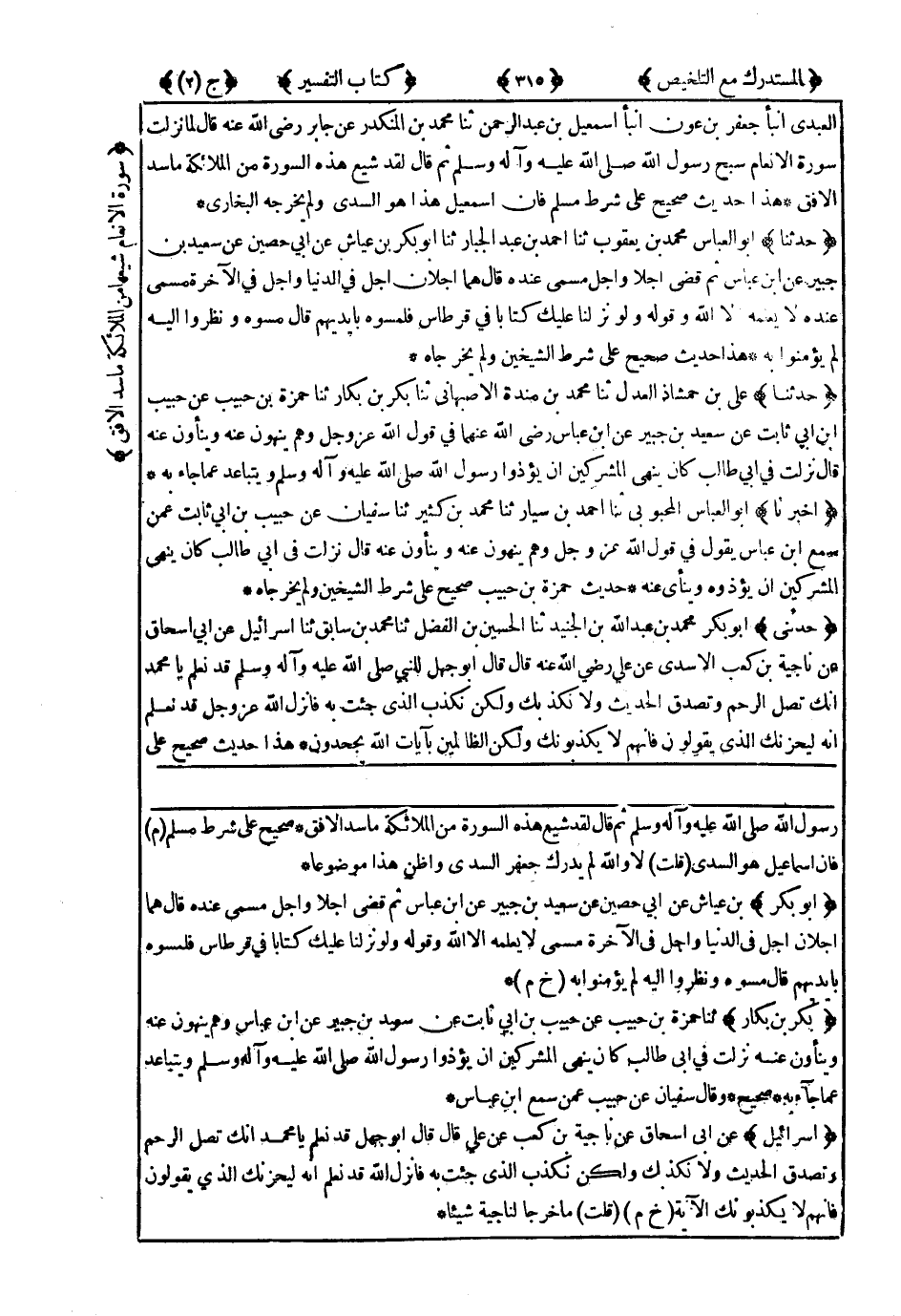 هَذَا حَدِيثٌ صَحِيحٌ عَلَى شَرْطِ الشَّيْخَيْنِ وَلَمْ يُخْرِجَاهُ.