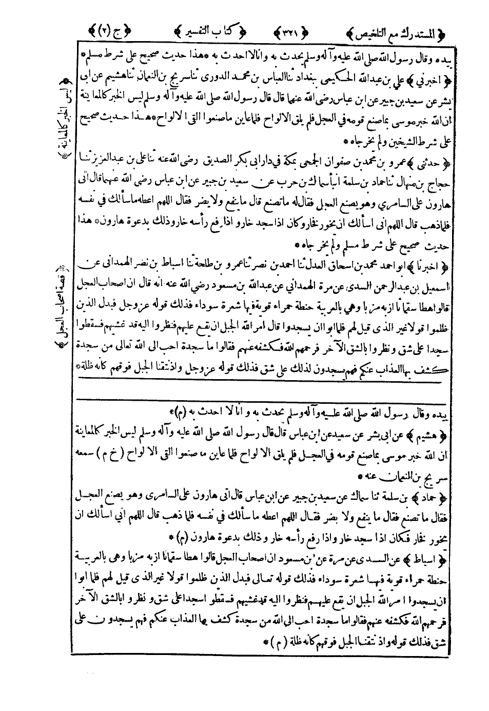 هَذَا حَدِيثٌ صَحِيحٌ عَلَى شَرْطِ الشَّيْخَيْنِ وَلَمْ يُخْرِجَاهُ.