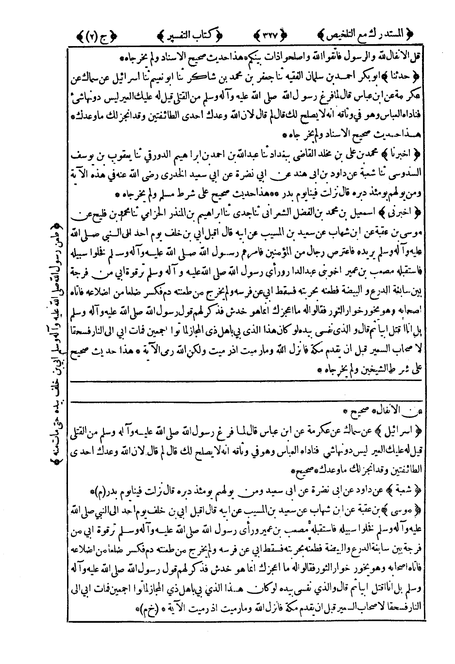 هَذَا حَدِيثٌ صَحِيحٌ عَلَى شَرْطِ الشَّيْخَيْنِ وَلَمْ يُخْرِجَاهُ