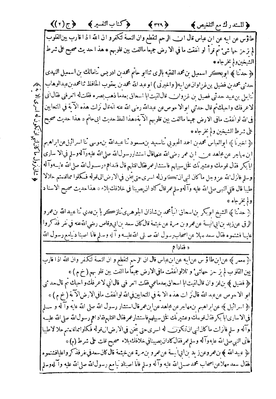 هَذَا حَدِيثٌ صَحِيحٌ عَلَى شَرْطِ الشَّيْخَيْنِ وَلَمْ يُخْرِجَاهُ.