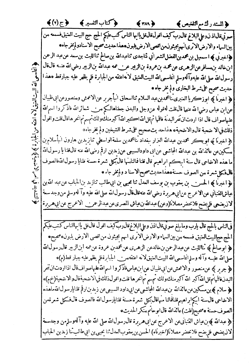 هَذَا حَدِيثٌ صَحِيحٌ عَلَى شَرْطِ الشَّيْخَيْنِ وَلَمْ يُخْرِجَاهُ.