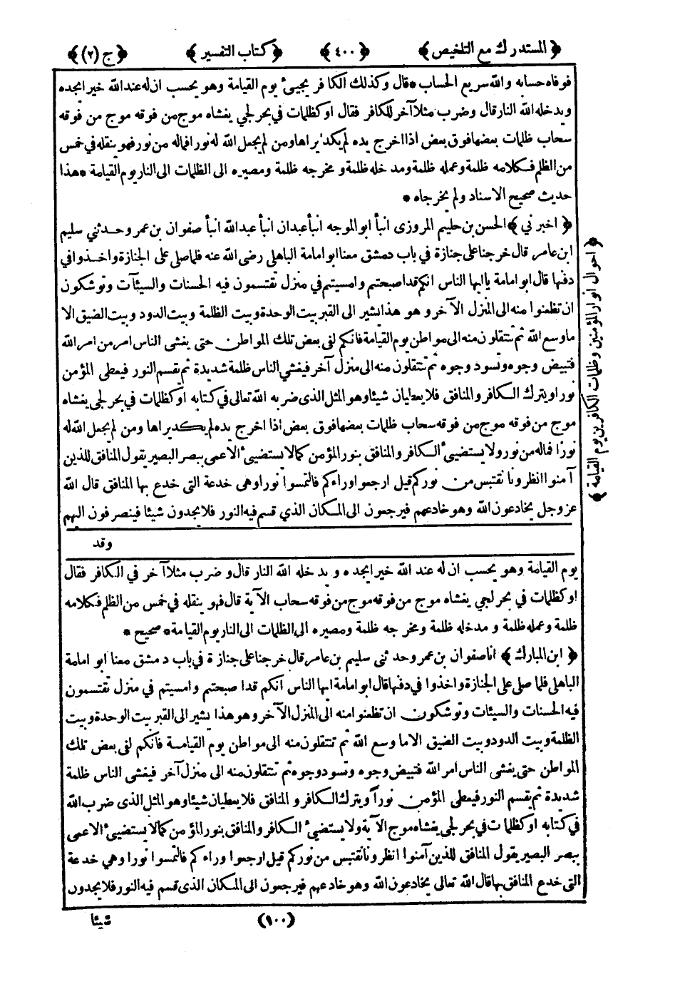 3511- أَخْبَرَنِي الْحَسَنُ بْنُ حَلِيمٍ الْمَرْوَزِيُّ ، أَنْبَأَ أَبُو الْمُوَجِّهِ ، أَنْبَأَ عَبْدَانُ ، أَنْبَأَ عَبْدُ اللهِ ، أَنْبَأَ صَفْوَانُ بْنُ عَمْرٍو ، حَدَّثَنِي سُلَيْمُ بْنُ عَامِرٍ ، قَالَ : خَرَجْنَا عَلَى جَنَازَةٍ فِي بَابِ دِمَشْقَ مَعَنَا أَبُو أُمَامَةَ الْبَاهِلِيِّ رَضِيَ اللَّهُ عَنْهُ ، فَلَمَّا صَلَّى عَلَى الْجَنَازَةِ وَأَخَذُوا فِي دَفْنِهَا ، قَالَ أَبُو أُمَامَةَ : يَا أَيُّهَا النَّاسُ ، إِنَّكُمْ قَدْ أَصْبَحْتُمْ وَأَمْسَيْتُمْ فِي مَنْزِلٍ تَقْتَسِمُونَ فِيهِ الْحَسَنَاتِ وَالسَّيِّئَاتِ ، وَتُوشِكُونَ أَنْ تَظْعَنُوا مِنْهُ إِلَى الْمَنْزِلِ الآخَرِ وَهُوَ هَذَا يُشِيرُ إِلَى الْقَبْرِ ، بَيْتُ الْوَحْدَةِ ، وَبَيْتُ الظُّلْمَةِ ، وَبَيْتُ الدُّودِ ، وَبَيْتُ الضِّيقِ إِلاَّ مَا وَسَّعَ اللَّهُ ، ثُمَّ تَنْتَقِلُونَ مِنْهُ إِلَى مَوَاطِنِ يَوْمِ الْقِيَامَةِ ، فَإِنَّكُمْ لَفِي بَعْضِ تِلْكَ الْمَوَاطِنِ حَتَّى يَغْشَى النَّاسَ أَمْرٌ مِنْ أَمْرِ اللهِ فَتَبْيَضُّ وُجُوهٌ وَتَسْوَدُّ وُجُوهٌ ، ثُمَّ تَنْتَقِلُونَ مِنْهُ إِلَى مَنْزِلٍ آخَرَ فَيَغْشَى النَّاسَ ظُلْمَةٌ شَدِيدَةٌ ، ثُمَّ يُقْسَمُ النُّورُ فَيُعْطَى الْمُؤْمِنُ نُورًا وَيُتْرَكُ الْكَافِرُ وَالْمُنَافِقُ فَلاَ يُعْطَيَانِ شَيْئًا وَهُوَ الْمَثَلُ الَّذِي ضَرَبَهُ اللَّهُ تَعَالَى فِي كِتَابِهِ {أَوْ كَظُلُمَاتٍ فِي بَحْرٍ لُجِّيٍّ يَغْشَاهُ مَوْجٌ مِنْ فَوْقِهِ مَوْجٌ مِنْ فَوْقِهِ سَحَابٌ ظُلُمَاتٌ بَعْضُهَا فَوْقَ بَعْضٍ ، إِذَا أَخْرَجَ يَدَهُ لَمْ يَكَدْ يَرَاهَا وَمَنْ لَمْ يَجْعَلِ اللَّهُ لَهُ نُورًا فَمَا لَهُ مِنْ نُورٍ} وَلاَ يَسْتَضِيءُ الْكَافِرُ ، وَالْمُنَافِقُ بِنُورِ الْمُؤْمِنِ كَمَا لاَ يَسْتَضِيءُ الأَعْمَى بِبَصَرِ الْبَصِيرِ يَقُولُ الْمُنَافِقُ لِلَّذِينَ آمَنُوا {انْظُرُونَا نَقْتَبِسْ مِنْ نُورِكُمْ قِيلَ ارْجِعُوا وَرَاءَكُمْ فَالْتَمِسُوا نُورًا} وَهِيَ خُدْعَةُ الَّتِي خَدَعَ بِهَا الْمُنَافِقُ ، قَالَ اللَّهُ عَزَّ وَجَلَّ : {يُخَادِعُونَ اللَّهَ وَهُوَ خَادِعُهُمْ} فَيَرْجِعُونَ إِلَى الْمَكَانِ الَّذِي قُسِمَ فِيهِ النُّورُ ، فَلاَ يَجِدُونَ شَيْئًا فَيَنْصَرِفُونَ إِلَيْهِمْ ، وَقَدْ ضُرِبَ بَيْنَهُمْ بِسُوَرٍ لَهُ بَابٌ بَاطِنُهُ فِيهِ الرَّحْمَةُ وَظَاهِرُهُ مِنْ قِبَلِهِ الْعَذَابُ يُنَادُونَهُمْ أَلَمْ نَكُنْ مَعَكُمْ ؟ نُصَلِّي بِصَلاَتِكُمْ وَنَغْزُو بِمَغَازِيكُمْ ؟ {قَالُوا بَلَى وَلَكِنَّكُمْ فَتَنْتُمْ أَنْفُسَكُمْ وَتَرَبَّصْتُمْ وَارْتَبْتُمْ وَغَرَّتْكُمُ الأَمَانِيُّ حَتَّى جَاءَ أَمْرُ اللهِ وَغَرَّكُمْ بِاللَّهِ الْغَرُورُ} تَلاَ إِلَى قَوْلِهِ : {وَبِئْسَ الْمَصِيرُ}.