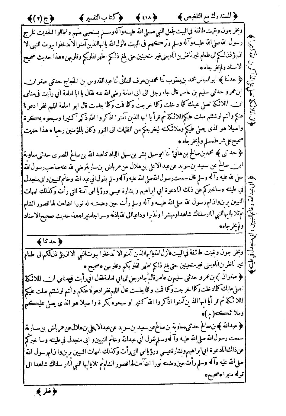 3565- حَدَّثَنَا أَبُو الْعَبَّاسِ مُحَمَّدُ بْنُ يَعْقُوبَ ، حَدَّثَنَا مُحَمَّدُ بْنُ عَوْفٍ الطَّائِيُّ ، حَدَّثَنَا عَبْدُ الْقُدُّوسِ بْنُ الْحَجَّاجِ ، حَدَّثَنِي صَفْوَانُ بْنُ عَمْرٍو ، حَدَّثَنِي سُلَيْمُ بْنُ عَامِرٍ ، قَالَ : جَاءَ رَجُلٌ إِلَى أَبِي أُمَامَةَ رَضِيَ اللَّهُ عَنْهُ ، فَقَالَ : يَا أَبَا أُمَامَةَ ، إِنِّي رَأَيْتُ فِيَ مَنَامِي أَنَّ الْمَلاَئِكَةَ تُصَلِّي عَلَيْكَ كُلَّمَا دَخَلْتَ ، وَكُلَّمَا خَرَجْتَ ، وَكُلَّمَا قُمْتَ ، وَكُلَّمَا جَلَسْتَ . قَالَ أَبُو أُمَامَةَ : اللَّهُمَّ غُفْرًا دَعُونَا عَنْكُمْ وَأَنْتُمْ لَوْ شِئْتُمْ صَلَّتْ عَلَيْكُمُ الْمَلاَئِكَةُ ، ثُمَّ قَرَأَ : {يَا أَيُّهَا الَّذِينَ آمَنُوا اذْكُرُوا اللَّهَ ذِكْرًا كَثِيرًا وَسَبِّحُوهُ بُكْرَةً وَأَصِيلاً هُوَ الَّذِي يُصَلِّي عَلَيْكُمْ وَمَلاَئِكَتُهُ لِيُخْرِجَكُمْ مِنَ الظُّلُمَاتِ إِلَى النُّورِ وَكَانَ بِالْمُؤْمِنِينَ رَحِيمًا}.