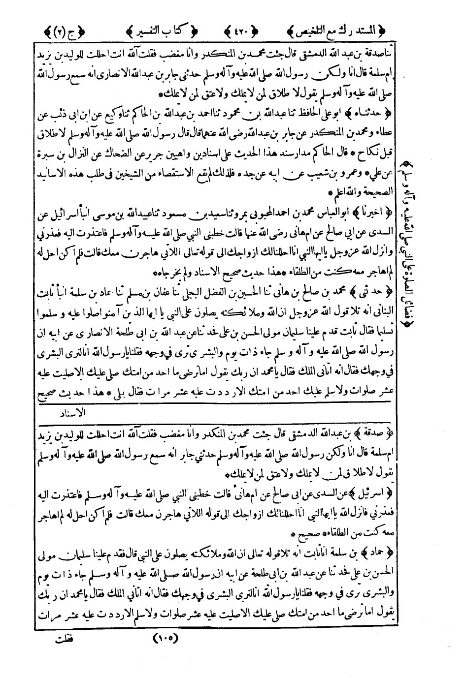 3575- حَدَّثَنِي مُحَمَّدُ بْنُ صَالِحِ بْنِ هَانِئٍ ، حَدَّثَنَا الْحُسَيْنُ بْنُ الْفَضْلِ الْبَجَلِيُّ ، حَدَّثَنَا عَفَّانُ بْنُ مُسْلِمٍ ، حَدَّثَنَا حَمَّادُ بْنُ سَلَمَةَ ، أَنْبَأَ ثَابِتٌ الْبُنَانِيُّ ، أَنَّهُ تَلاَ قَوْلَ اللهِ عَزَّ وَجَلَّ : {إِنَّ اللَّهَ وَمَلاَئِكَتَهُ يُصَلُّونَ عَلَى النَّبِيِّ يَا أَيُّهَا الَّذِينَ آمَنُوا صَلُّوا عَلَيْهِ وَسَلَّمُوا تَسْلِيمًا} فَقَالَ ثَابِتٌ : قَدِمَ عَلَيْنَا سُلَيْمَانُ مَوْلَى الْحَسَنِ بْنِ عَلِيٍّ فَحَدَّثَنَا ، عَنْ عَبْدِ اللهِ بْنِ أَبِي طَلْحَةَ الأَنْصَارِيِّ ، عَنْ أَبِيهِ ، أَنَّ رَسُولَ اللهِ صَلَّى اللَّهُ عَلَيْهِ وَسَلَّمَ جَاءَ ذَاتَ يَوْمٍ وَالْبُشْرَى تُرَى فِي وَجْهِهِ فَقُلْنَا : يَا رَسُولَ اللهِ ، إِنَّا لَنَرَى الْبُشْرَى فِي وَجْهِكَ ، فَقَالَ : إِنَّهُ أَتَانِي الْمَلَكُ فَقَالَ : يَا مُحَمَّدُ ، إِنَّ رَبَّكَ يَقُولُ : أَمَا تَرْضَى مَا أَحَدٌ مِنْ أُمَّتِكَ صَلَّى عَلَيْكَ إِلاَّ صَلَّيْتُ عَلَيْهِ عَشَرَ صَلَوَاتٍ ، وَلاَ سَلَّمَ عَلَيْكَ أَحَدٌ مِنْ أُمَّتِكَ إِلاَّ رَدَدْتُ عَلَيْهِ عَشْرَ مَرَّاتٍ ؟ فَقَالَ : بَلَى.