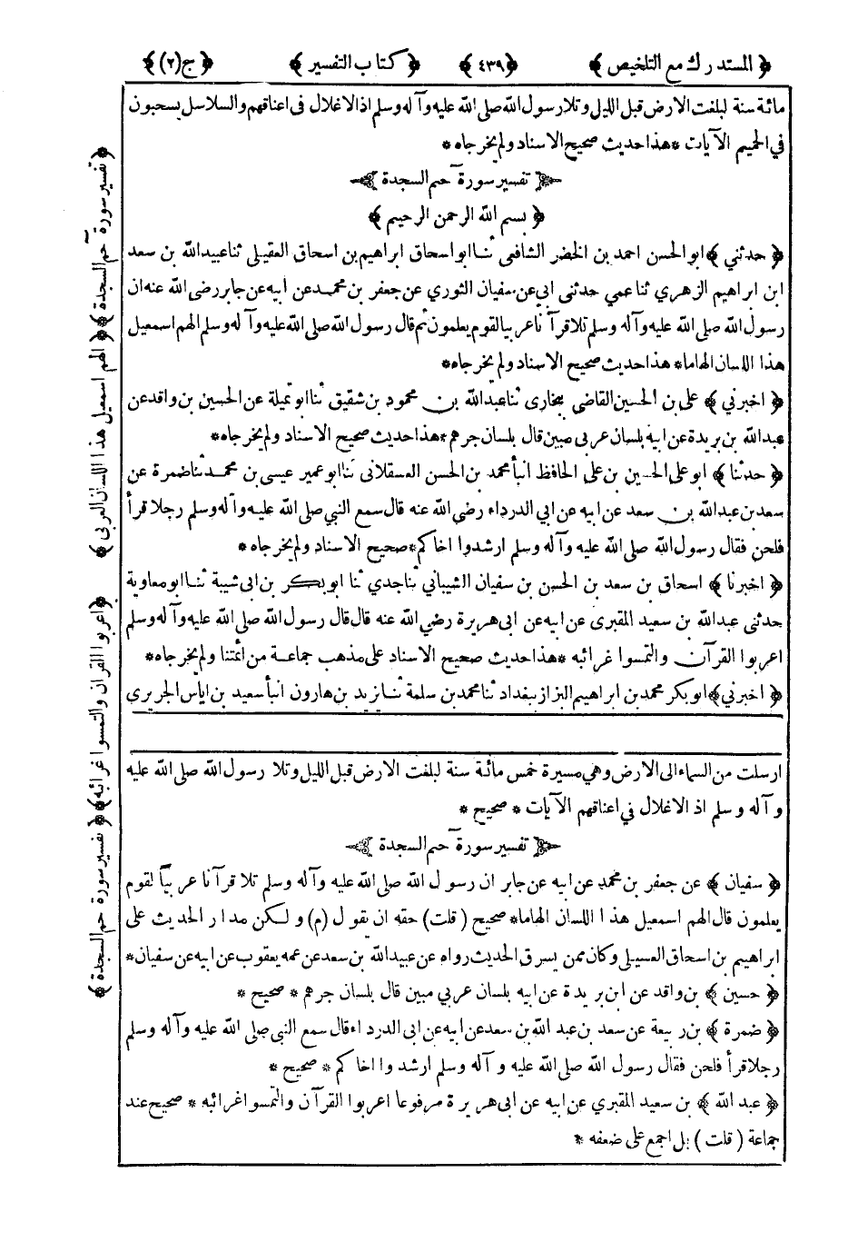 هَذَا حَدِيثٌ صَحِيحُ الإِسْنَادِ وَلَمْ يُخَرِّجَاهُ.