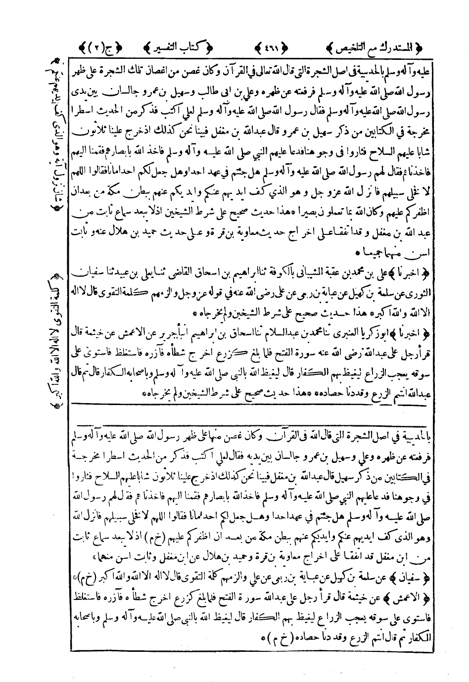هَذَا حَدِيثٌ صَحِيحٌ عَلَى شَرْطِ الشَّيْخَيْنِ وَلَمْ يُخَرِّجَاهُ.