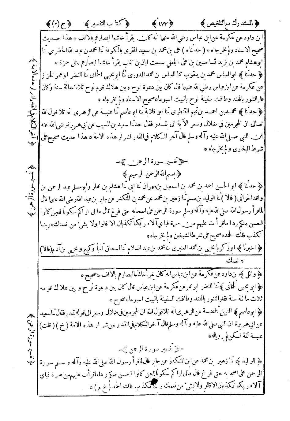 3766- حَدَّثَنَا أَبُو الْحَسَنِ أَحْمَدُ بْنُ مُحَمَّدِ بْنِ إِسْمَاعِيلَ بْنِ مِهْرَانَ ، حَدَّثَنَا أَبِي ، حَدَّثَنَا هِشَامُ بْنُ عَمَّارٍ ، وَأَبُو مُسْلِمٍ عَبْدُ الرَّحْمَنِ بْنُ وَاقِدُ الْحَرَّانِيُّ قَالاَ : حَدَّثَنَا الْوَلِيدُ بْنُ مُسْلِمٍ ، حَدَّثَنَا زُهَيْرُ بْنُ مُحَمَّدٍ ، عَنْ مُحَمَّدِ بْنِ الْمُنْكَدِرِ ، عَنْ جَابِرِ بْنِ عَبْدِ اللهِ رَضِيَ اللَّهُ عَنْهُمَا ، قَالَ : لَمَّا قَرَأَ رَسُولُ اللهِ صَلَّى اللَّهُ عَلَيْهِ وَسَلَّمَ سُورَةَ الرَّحْمَنِ عَلَى أَصْحَابِهِ حَتَّى فَرَغَ قَالَ : مَا لِي أَرَاكُمْ سُكُوتًا لَلْجِنُّ كَانُوا أَحْسَنَ مِنْكُمْ رَدًّا ، مَا قَرَأْتُ عَلَيْهِمْ مِنْ مَرَّةٍ ، {فَبِأَيِّ آلاَءِ رَبِّكُمَا تُكَذِّبَانِ} إِلاَّ قَالُوا : وَلاَ بِشَيْءٍ مِنْ نِعْمَتِكَ رَبَّنَا نُكَذِّبُ فَلَكَ الْحَمْدُ.