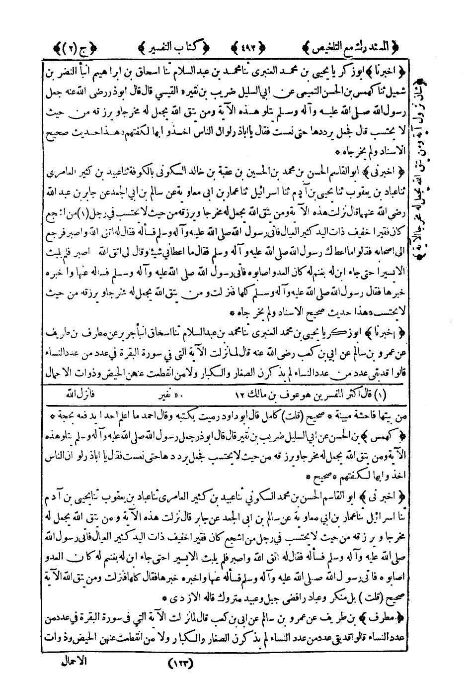 3821- أَخْبَرَنَا أَبُو زَكَرِيَّا يَحْيَى بْنُ مُحَمَّدٍ الْعَنْبَرِيُّ ، حَدَّثَنَا مُحَمَّدُ بْنُ عَبْدِ السَّلاَمِ ، حَدَّثَنَا إِسْحَاقُ ، أَنْبَأَ جَرِيرٌ ، عَنْ مُطَرِّفِ بْنِ طَرِيفٍ ، عَنْ عَمْرِو بْنِ سَالِمٍ ، عَنْ أُبَيِّ بْنِ كَعْبٍ رَضِيَ اللَّهُ عَنْهُ ، قَالَ : لَمَّا نَزَلَتِ الآيَةُ الَّتِي فِي سُورَةِ الْبَقَرَةِ فِي عَدَدٍ مِنْ عَدَدِ النِّسَاءِ قَالُوا : قَدْ بَقِيَ عَدَدٌ مِنَ النِّسَاءِ لَمْ يُذْكَرْنَ الصِّغَارُ وَالْكُبَّارُ ، وَلاَ مَنِ انْقَطَعَتْ عَنْهُنَّ الْحَيْضُ ، وَذَوَاتُ الأَحْمَالِ فَأَنْزَلَ اللَّهُ عَزَّ وَجَلَّ الآيَةَ الَّتِي فِي سُورَةِ النِّسَاءِ {وَاللاَّئِي يَئِسْنَ مِنَ الْمَحِيضِ مِنْ نِسَائِكُمْ إِنِ ارْتَبْتُمْ فَعِدَّتُهُنَّ ثَلاَثَةُ أَشْهُرٍ وَاللاَّئِي لَمْ يَحِضْنَ وَأُولاَتُ الأَحْمَالِ أَجَلُهُنَّ أَنْ يَضَعْنَ حَمْلَهُنَّ}.