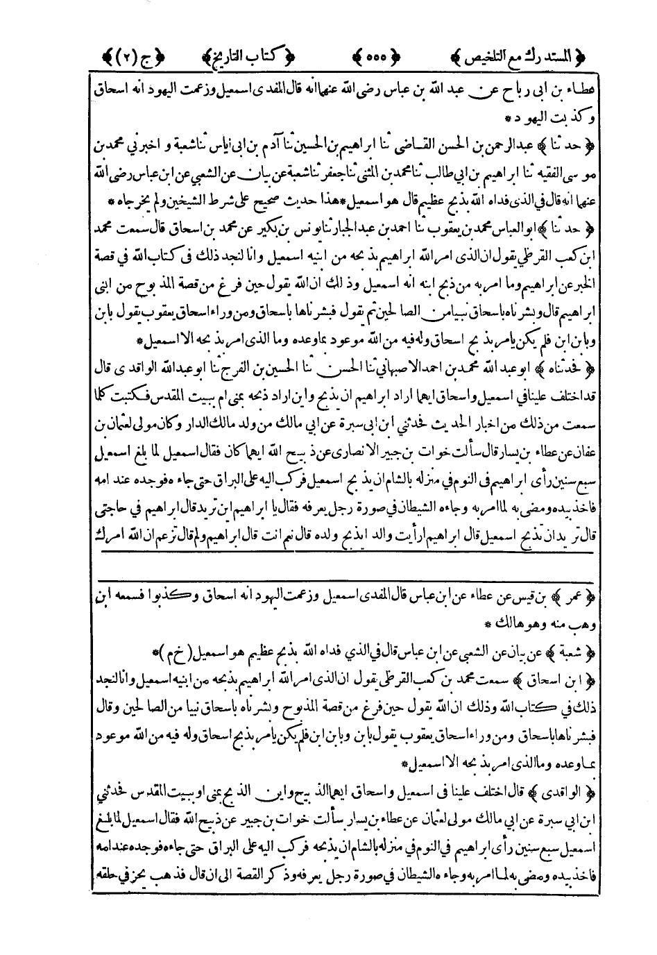 4039- حَدَّثَنَا أَبُو الْعَبَّاسِ مُحَمَّدُ بْنُ يَعْقُوبَ ، حَدَّثَنَا أَحْمَدُ بْنُ عَبْدِ الْجَبَّارِ ، حَدَّثَنَا يُونُسُ بْنُ بُكَيْرٍ ، عَنْ مُحَمَّدِ بْنِ إِسْحَاقَ ، قَالَ : سَمِعْتُ مُحَمَّدَ بْنَ كَعْبٍ الْقُرَظِيَّ ، يَقُولُ : إِنَّ الَّذِي أَمَرَ اللَّهُ إِبْرَاهِيمَ بِذَبْحِهِ مِنِ ابْنَيْهِ إِسْمَاعِيلُ ، وَإِنَّا لَنَجِدُ ذَلِكَ فِي كِتَابِ اللهِ فِي قِصَّةِ الْخَبَرِ عَنْ إِبْرَاهِيمَ وَمَا أَمَرَ بِهِ مِنْ ذَبْحِ ابْنِهِ أَنَّهُ إِسْمَاعِيلُ ، وَذَلِكَ أَنَّ اللَّهَ يَقُولُ حِينَ فَرَغَ مِنْ قِصَّةِ الْمَذْبُوحِ مِنِ ابْنَيْ إِبْرَاهِيمَ قَالَ : {وَبَشَّرْنَاهُ بِإِسْحَاقَ نَبِيًّا مِنَ الصَّالِحِينَ} ، ثُمَّ يَقُولُ : {فَبَشَّرْنَاهَا بِإِسْحَاقَ وَمِنْ وَرَاءِ إِسْحَاقَ يَعْقُوبَ} يَقُولُ : بِابْنٍ وَبِابْنِ ابْنٍ فَلَمْ يَكُنْ يَأْمُرُ بِذَبْحِ إِسْحَاقَ وَلَهُ فِيهِ مِنَ اللهِ مَوْعُودٌ بِمَا وَعَدَهُ وَمَا الَّذِي أَمَرَ بِذَبْحِهِ إِلاَّ إِسْمَاعِيلُ.