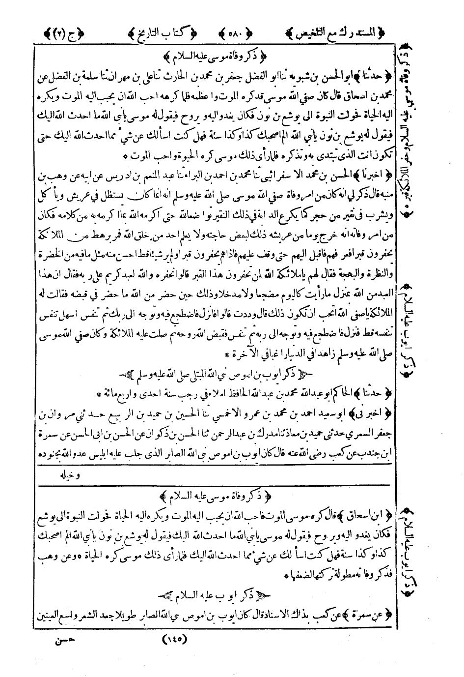 4111- حَدَّثَنَا أَبُو الْحَسَنِ بْنُ شَبُّوَيْهِ ، حَدَّثَنَا أَبُو الْفَضْلِ جَعْفَرُ بْنُ مُحَمَّدِ بْنِ الْحَارِثِ ، حَدَّثَنَا عَلِيُّ بْنُ مِهْرَانَ ، حَدَّثَنَا سَلَمَةُ بْنُ الْفَضْلِ ، عَنْ مُحَمَّدِ بْنِ إِسْحَاقَ ، قَالَ : كَانَ صَفِيُّ اللهِ مُوسَى قَدْ كَرِهَ الْمَوْتَ وَأَعْظَمَهُ فَلَمَّا كَرِهَهُ أَحَبَّ اللَّهُ أَنْ يُحَبِّبَ إِلَيْهِ الْمَوْتَ وَيُكَرِّهَ إِلَيْهِ الْحَيَاةَ ، فَحُوِّلَتِ النُّبُوَّةُ إِلَى يُوشَعَ بْنِ نُونٍ فَكَانَ يَغْدُو إِلَيْهِ وَيَرُوحُ فَيَقُولُ لَهُ مُوسَى : يَا نَبِيَّ اللهِ مَا أَحْدَثَ اللَّهُ إِلَيْكَ فَيَقُولُ لَهُ يُوشَعُ بْنُ نُونٍ : يَا نَبِيَّ اللهِ ، أَلَمْ أَصْحَبْكَ كَذَا وَكَذَا سَنَةً فَهَلْ كُنْتُ أَسْأَلُكَ عَنْ شَيْءٍ مِمَّا أَحْدَثَ اللَّهُ إِلَيْكَ حَتَّى تَكُونَ أَنْتَ الَّذِي تَبْتَدِئُ بِهِ وَتَذْكُرُهُ ، فَلَمَّا رَأَى ذَلِكَ مُوسَى كَرِهَ الْحَيَاةَ وَأَحَبَّ الْمَوْتَ.