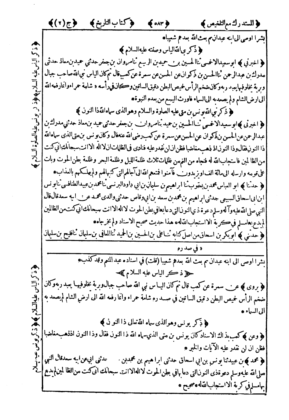 4120- أَخْبَرَنِي أَبُو سَعِيدٍ الأَحْمَسِيُّ ، حَدَّثَنَا الْحُسَيْنُ بْنُ حُمَيْدٍ ، حَدَّثَنَا مَرْوَانُ بْنُ جَعْفَرٍ ، حَدَّثَنِي حُمَيْدُ بْنُ مُعَاذٍ ، حَدَّثَنِي مُدْرِكُ بْنُ عَبْدِ الرَّحْمَنِ ، عَنِ الْحَسَنِ بْنِ ذَكْوَانَ ، عَنِ الْحَسَنِ ، عَنْ سَمُرَةَ ، عَنْ كَعْبٍ رَضِيَ اللَّهُ عَنْهُ ، قَالَ : وَكَانَ يُونُسُ بْنُ مَتَّى الَّذِي سَمَّاهُ اللَّهُ ذَا النُّونِ فَقَالَ : {وَذَا النُّونِ إِذْ ذَهَبَ مُغَاضِبًا فَظَنَّ أَنْ لَنْ نَقْدِرَ عَلَيْهِ فَنَادَى فِي الظُّلُمَاتِ أَنْ لاَ إِلَهَ إِلاَّ أَنْتَ سُبْحَانَكَ إِنِّي كُنْتُ مِنَ الظَّالِمِينَ} فَاسْتَجَابَ اللَّهُ لَهُ فَنَجَّاهُ مِنَ الْغَمِّ مِنْ ظُلُمَاتٍ ثَلاَثٍ : ظُلْمَةِ اللَّيْلِ ، وَظُلْمَةِ الْبَحْرِ ، وَظُلْمَةِ بَطْنِ الْحُوتِ ، وَبَاتَ عَلَى قَوْمِهِ وَأَرْسَلَهُ إِلَى مِائَةِ أَلْفٍ أَوْ يَزِيدُونَ فَآمَنُوا فَمَتَّعَهُمُ اللَّهُ إِلَى آجَالِهِمُ الَّتِي كَتَبَهَا لَهُمْ وَلَمْ يُهْلِكْهُمْ بِالْعَذَابِ.