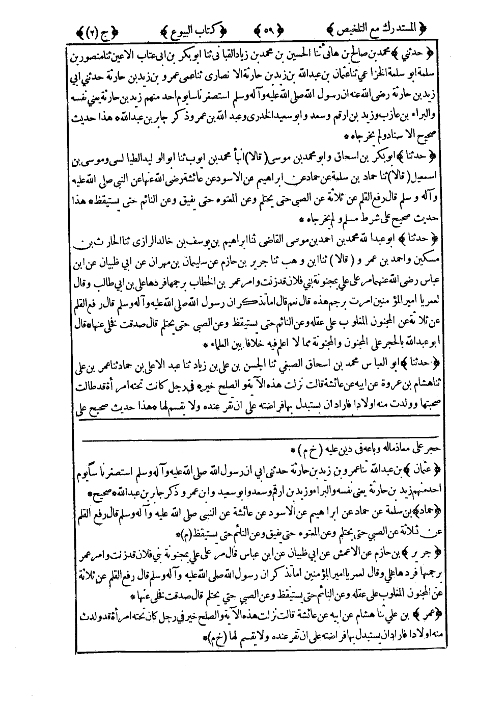 2351- حَدَّثَنَا أَبُو عَبْدِ اللهِ مُحَمَّدُ بْنُ أَحْمَدَ بْنِ مُوسَى الْقَاضِي ، حَدَّثَنَا إِبْرَاهِيمُ بْنُ يُوسُفَ بْنِ خَالِدٍ الرَّازِيُّ ، حَدَّثَنَا الْحَارِثُ بْنُ مِسْكِينٍ ، وَأَحْمَدُ بْنُ عَمْرٍو ، قَالاَ : حَدَّثَنَا ابْنُ وَهْبٍ ، حَدَّثَنَا جَرِيرُ بْنُ حَازِمٍ ، عَنْ سُلَيْمَانَ بْنِ مِهْرَانَ ، عَنْ أَبِي ظَبْيَانَ ، عَنِ ابْنِ عَبَّاسٍ رَضِيَ اللَّهُ عَنْهُمَا ، مُرَّ عَلَى عَلِيٍّ بِمَجْنُونَةِ بَنِي فُلاَنٍ ، قَدْ زَنَتْ ، وَأَمَرَ عُمَرُ بْنُ الْخَطَّابِ بِرَجْمِهَا ، فَرَدَّهَا عَلِيُّ بْنُ أَبِي طَالِبٍ ، وَقَالَ لِعُمَرَ : يَا أَمِيرَ الْمُؤْمِنِينَ أَمَرْتَ بِرَجْمِ هَذِهِ ؟ قَالَ : نَعَمْ ، قَالَ : أَمَا تَذْكُرُ أَنَّ رَسُولَ اللهِ صَلَّى اللَّهُ عَلَيْهِ وَسَلَّمَ قَالَ : رُفِعَ الْقَلَمُ عَنْ ثَلاَثٍ : عَنِ الْمَجْنُونِ الْمَغْلُوبِ عَلَى عَقْلِهِ ، وَعَنِ النَّائِمِ حَتَّى يَسْتَيْقِظَ ، وَعَنِ الصَّبِيِّ حَتَّى يَحْتَلِمَ قَالَ : صَدَقْتَ فَخَلَّى عَنْهَا .