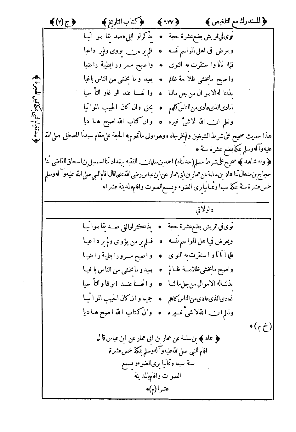 هَذَا حَدِيثٌ صَحِيحٌ عَلَى شَرْطِ الشَّيْخَيْنِ وَلَمْ يُخَرِّجَاهُ ، وَهُوَ أَوْلَى مَا تَقُومُ بِهِ الْحُجَّةُ عَلَى مَقَامِ سَيِّدَنَا الْمُصْطَفَى صَلَّى اللَّهُ عَلَيْهِ وَسَلَّمَ بِمَكَّةَ بِضْعَ عَشْرَةَ سَنَةً.