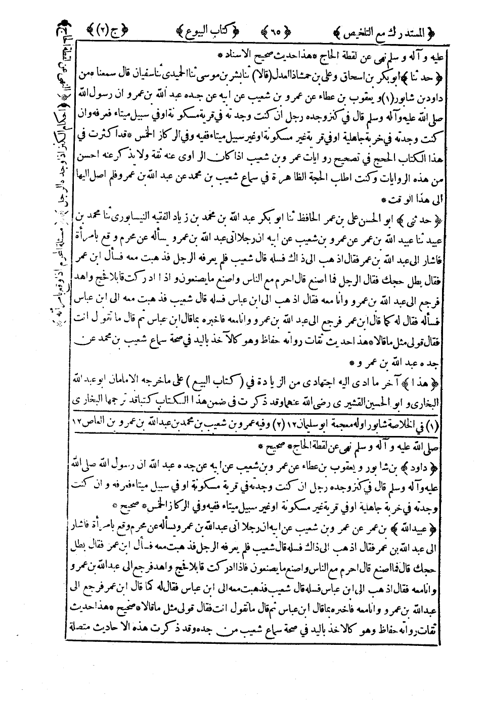 2374- حَدَّثَنَا أَبُو بَكْرِ بْنُ إِسْحَاقَ ، وَعَلِيُّ بْنُ حَمْشَاذٍ الْعَدْلُ ، قَالاَ : حَدَّثَنَا بِشْرُ بْنُ مُوسَى ، حَدَّثَنَا الْحُمَيْدِيُّ ، حَدَّثَنَا سُفْيَانُ ، قَالَ : سَمِعْنَاهُ مِنْ دَاوُدَ بْنِ شَابُورٍ وَيَعْقُوبَ بْنِ عَطَاءٍ ، عَنْ عَمْرِو بْنِ شُعَيْبٍ ، عَنْ أَبِيهِ ، عَنْ جَدِّهِ عَبْدِ اللهِ بْنِ عَمْرٍو ، أَنَّ رَسُولَ اللهِ صَلَّى اللَّهُ عَلَيْهِ وَسَلَّمَ قَالَ فِي كَنْزٍ وَجَدَهُ رَجُلٌ : إِنْ كُنْتَ وَجَدْتَهُ فِي قَرْيَةٍ مَسْكُونَةٍ ، أَوْ فِي سَبِيلٍ مَيْتَاءَ ، فَعَرِّفْهُ ، وَإِنْ كُنْتَ وَجَدْتَهُ فِي خَرِبَةٍ جَاهِلِيَّةٍ ، أَوْ فِي قَرْيَةٍ غَيْرِ مَسْكُونَةٍ ، أَوْ غَيْرِ سَبِيلٍ مَيْتَاءَ ، فَفِيهِ وَفِي الرِّكَازِ الْخُمُسُ.