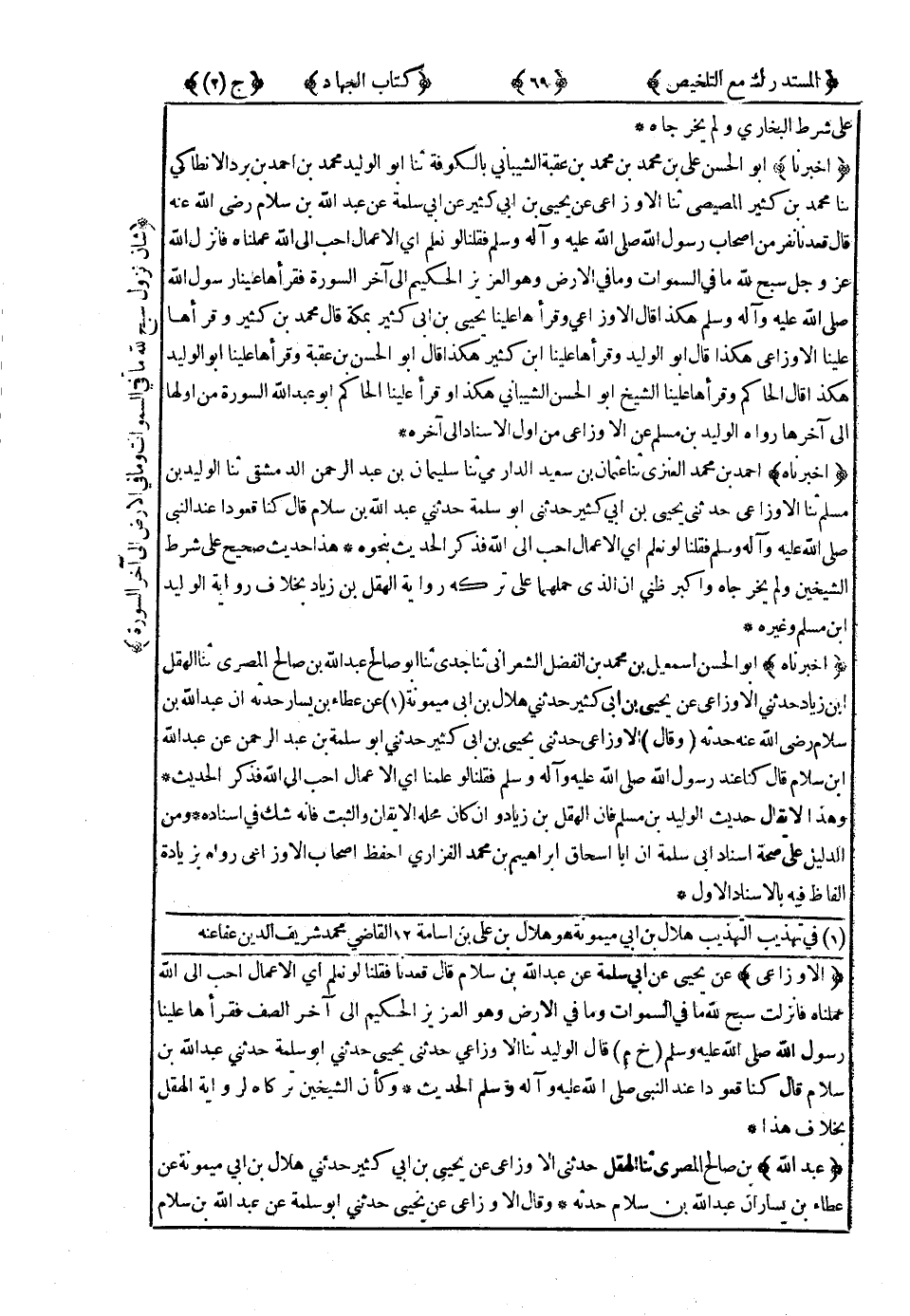 هَكَذَا قَالَ الأَوْزَاعِيُّ وَقَرَأَهَا عَلَيْنَا يَحْيَى بْنُ أَبِي كَثِيرٍ بِمَكَّةَ قَالَ مُحَمَّدُ بْنُ كَثِيرٍ وَقَرَأَهَا عَلَيْنَا الأَوْزَاعِيُّ هَكَذَا قَالَ أَبُو الْوَلِيدِ وَقَرَأَهَا عَلَيْنَا ابْنُ كَثِيرٍ هَكَذَا قَالَ أَبُو الْحَسَنِ بْنُ عُقْبَةَ وَقَرَأَهَا عَلَيْنَا أَبُو الْوَلِيدِ هَكَذَا قَالَ الْحَاكِمُ : وَقَرَأَهَا عَلَيْنَا الشَّيْخُ أَبُو الْحَسَنِ الشَّيْبَانِيُّ هَكَذَا وَقَرَأَ عَلَيْنَا الْحَاكِمُ أَبُو عَبْدِ اللهِ : السُّورَةَ مِنْ أَوَّلِهَا إِلَى آخِرِهَا رَوَاهُ الْوَلِيدُ بْنُ مُسْلِمٍ عَنِ الأَوْزَاعِيِّ مِنْ أَوَّلِ الإِسْنَادِ إِلَى آخِرِهِ.